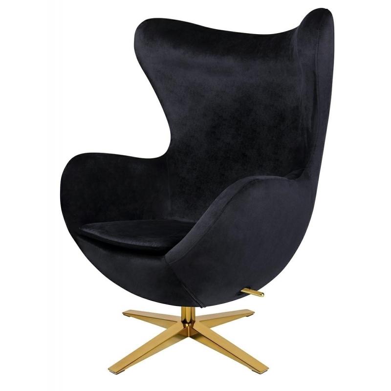Fotel EGG SZEROKI VELVET GOLD czarny.50 - welur, podstawa złota