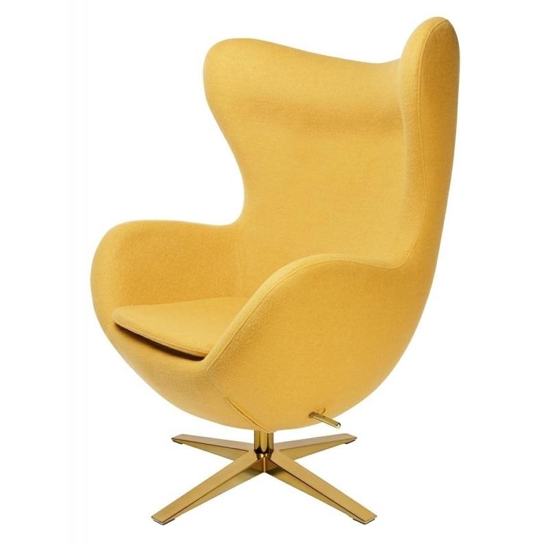 Fotel EGG SZEROKI GOLD musztardowy.13 - wełna, podstawa złota