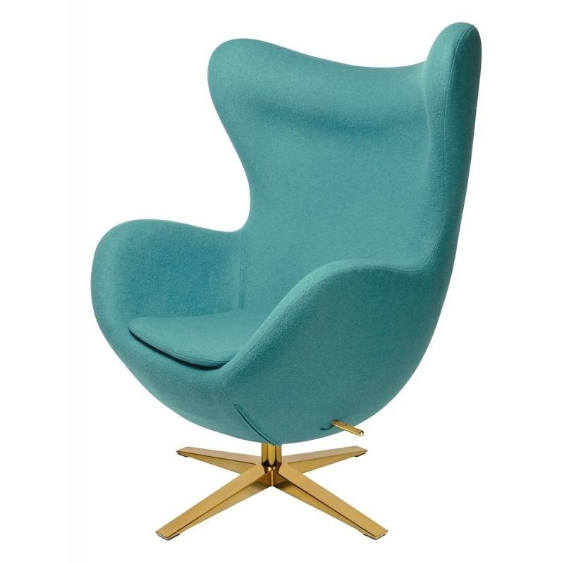 Fotel EGG SZEROKI GOLD turkusowy.12 - wełna, podstawa złota