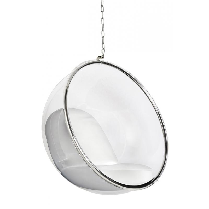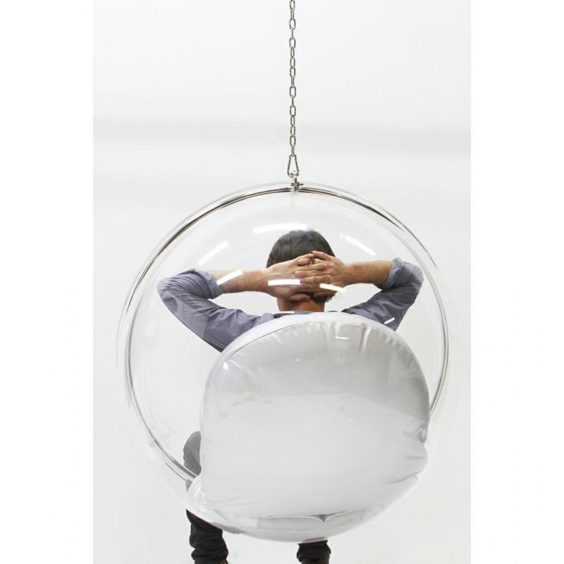 Fotel wiszący BUBBLE poduszka biała - korpus akryl, poduszka ekoskóra