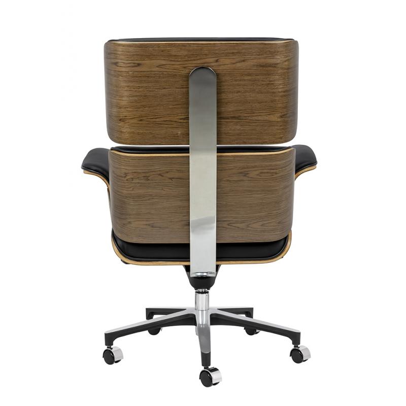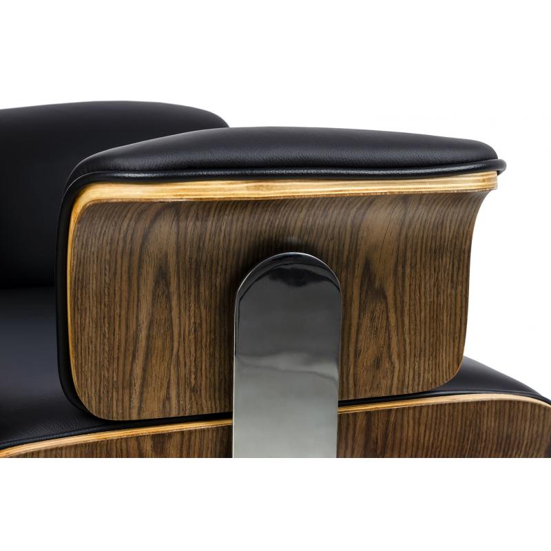 Fotel biurowy LOUNGE BUSINESS czarny - sklejka orzech, skóra naturalna, stal polerowana