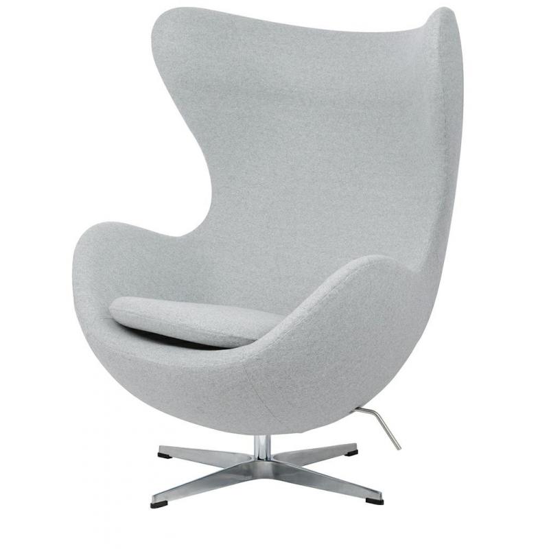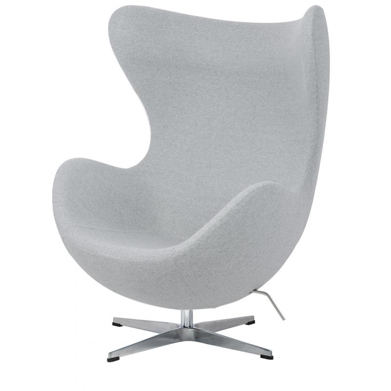 Fotel EGG CLASSIC to klasyka sama w sobie. Jeden z najbardziej znanych kształtów fotela. Fotel tapicerowany jest wełną kaszmirową (70% wełna naturalna, 30% poliester). Tkanina ta słynie z wyjątkowej wytrzymałości. Fotel wyposażony jest w mechanizm obrotowy z funkcją bujania. Korpus fotela wykonany jest z włókna szklanego. Podstawa oraz uchwyt wykonane zostały z polerowanego aluminium.Waga netto 1 szt.: 29 kg Waga opakowania: 30 kg Sposób wysyłki: Paleta Wymiary opakowania: 102 cm x 84 cm x 62