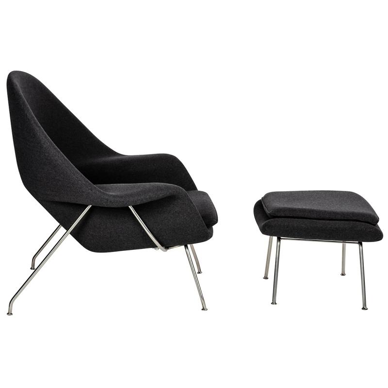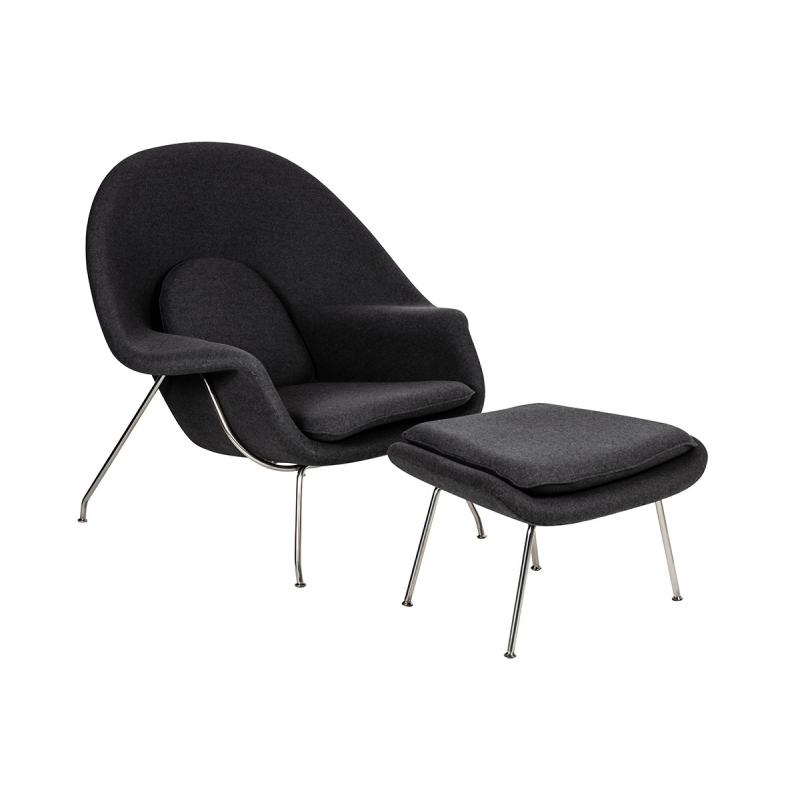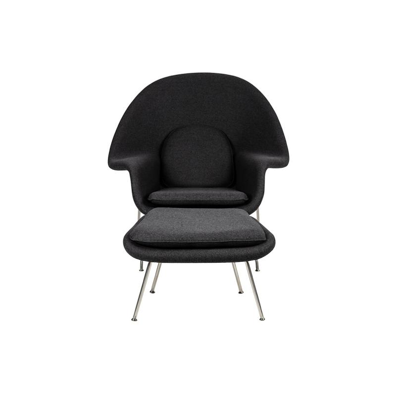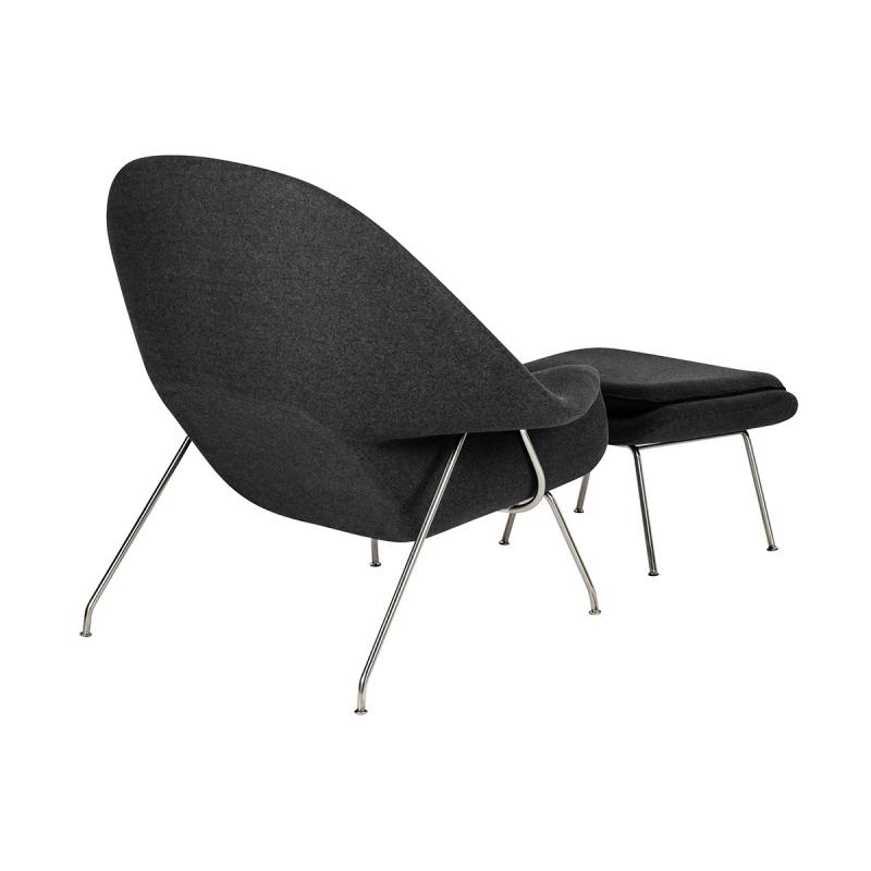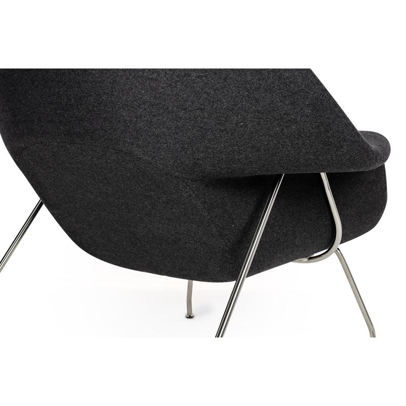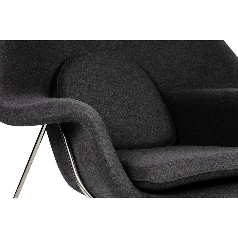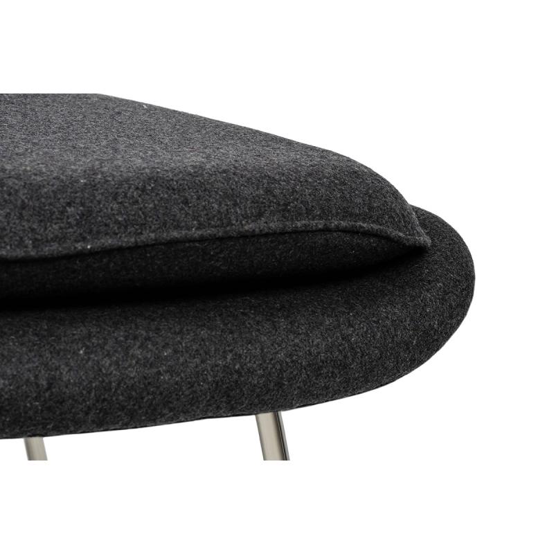 Fotel COZY z podnóżkiem, grafitowy szary .4- wełna kaszmirowa, stal polerowana