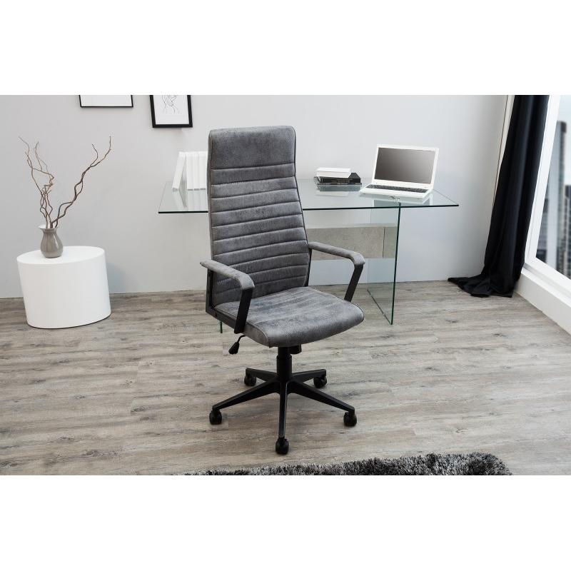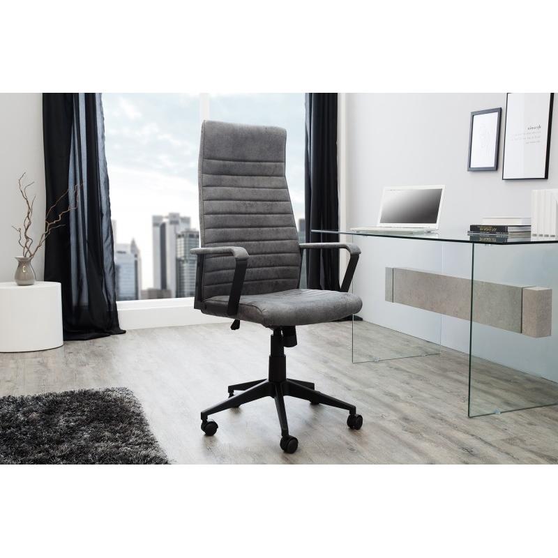 INVICTA fotel biurowy LAZIO HIGH szary. Lazio High, to fotel o bardzo komfortowym siedzisku w kolorze szary vintage z podłokietnikami. Posiada wytrzymałą podstawę oraz wysokie oparcie wykonana z metalu. Dzięki swojemu eleganckiemu wyglądowi nada szyku niejednemu wnętrzu. Można się nim swobodnie poruszać dzięki kółkom zamontowanym na podstawie ramy.Wymiary fotelu: Szerokość: 68 cm Wysokość: 117-127 cm Głębokość: 60 cm.