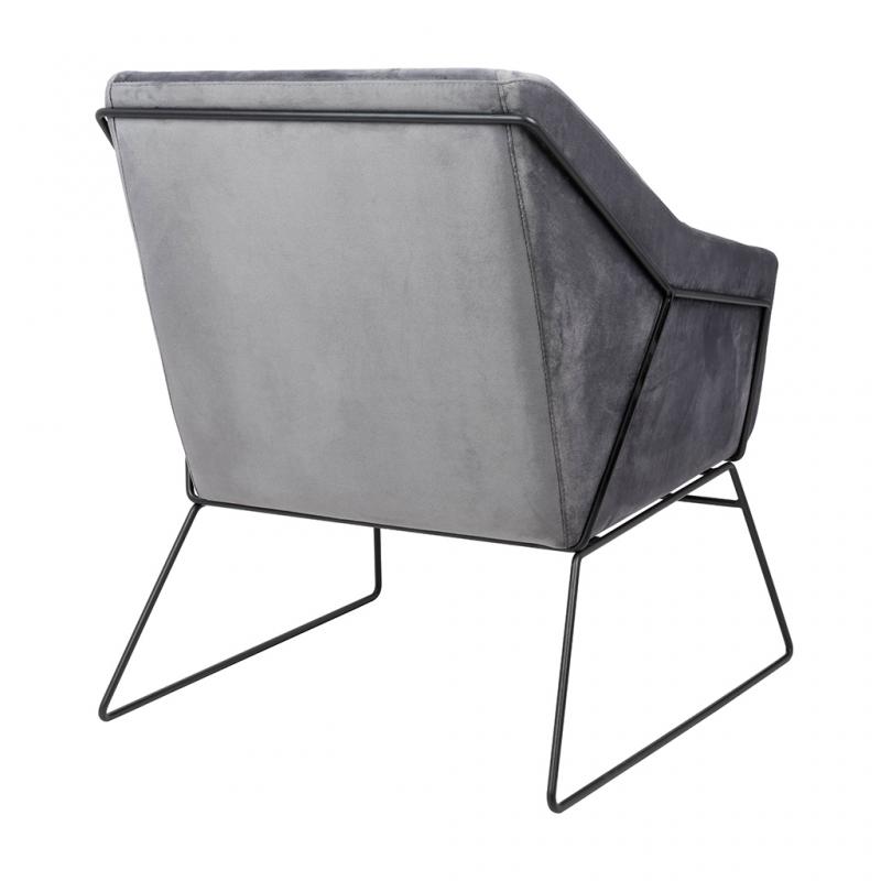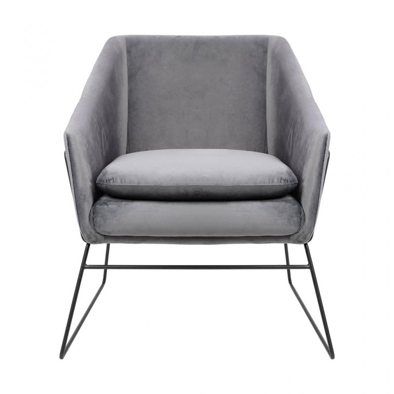 Fotel EMMA. Siedzisko oraz poduszka tapicerowane są aksamitnym welurem w ciemnoszarym kolorze. Metalowa podstawa lakierowana na kolor czarny nadaje Emmie oryginalnego charakteru.Możliwość personalizacji obicia, wyjątkowy design oraz solidne wykonanie sprawia, że fotel doskonale odnajdzie się w każdej aranżacji.Głębokość siedziska: 52 cm Wymiar poduszki: 55 cm x 47 cm x 6 cm Sposób wysyłki: Paleta.