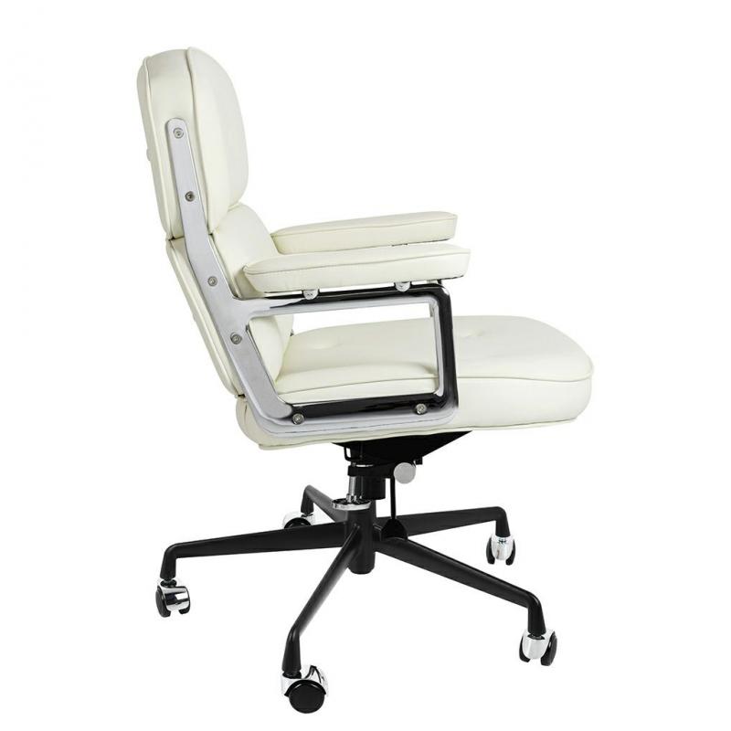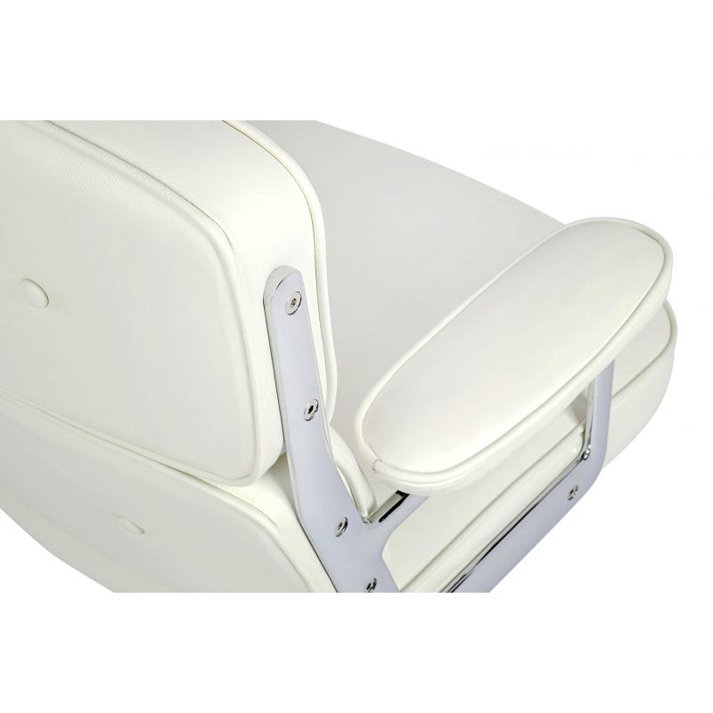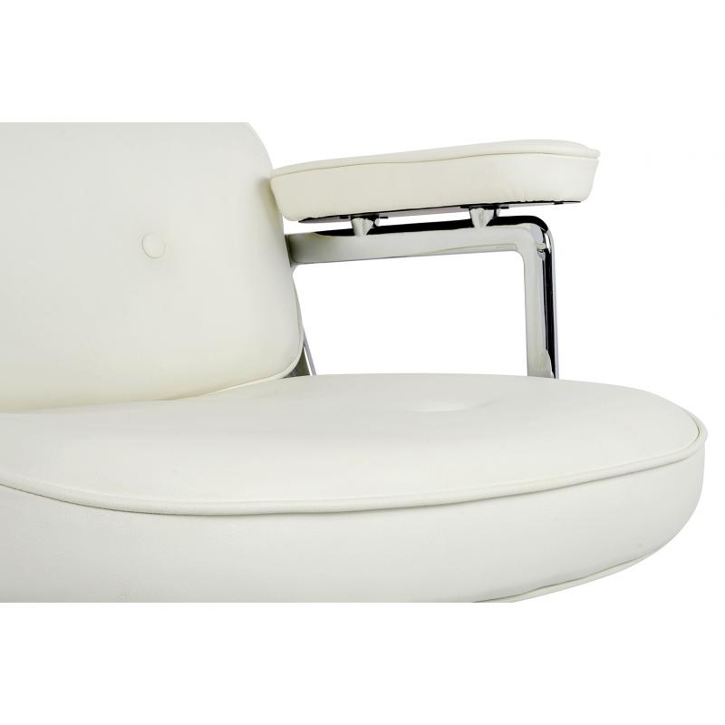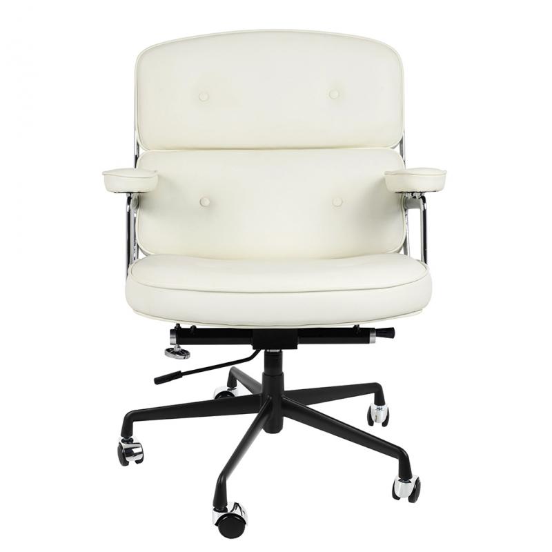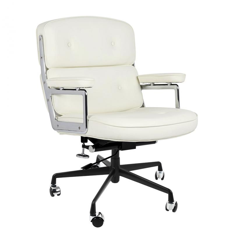 Fotel biurowy ICON PRESTIGE PLUS to klasyka lat 60. Fotel w całości tapicerowany jest włoską selekcjonowaną skórą naturalną, w kolorze białym. Podstawa oraz stelaż wykonane są z polerowanego aluminium w kolorze czarnym. Icon posiada obrotowy mechanizm z regulacją wysokości i możliwością odchylania. Fotel wykonany zgodnie ze standardem BIFMA, oznacza to że jest ergonomiczny, bezpieczny i trwały.Szerokość siedziska: 57 cm Głębokość siedziska: 48 cm Średnica podstawy: 69 cm Wysokość oparcia: 51 c
