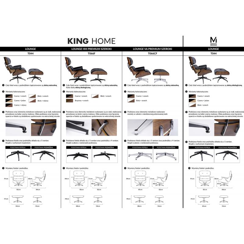 Fotel LOUNGE biały z podnóżkiem z jesionowego drewna. Cały fotel wraz z podnóżkiem tapicerowane są skórą naturalną w kolorze białym. Korpus fotela został wykonany z giętego na ciepło drewna jesionu. Podstawy oraz elementy metalowe wykonane zostały ze stali, malowanej proszkowo na kolor czarny matowy. Dla podkreślenia elegancji, obie podstawy oraz łączenia oparcia w fotelu są dodatkowo spolerowane na wierzchniej stronie. Fotel oraz podnóżek są obrotowe. Lounge z podnóżkiem doskonale sprawdzi się
