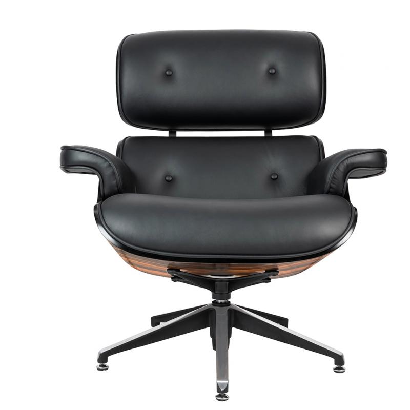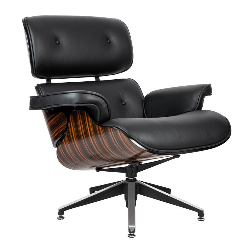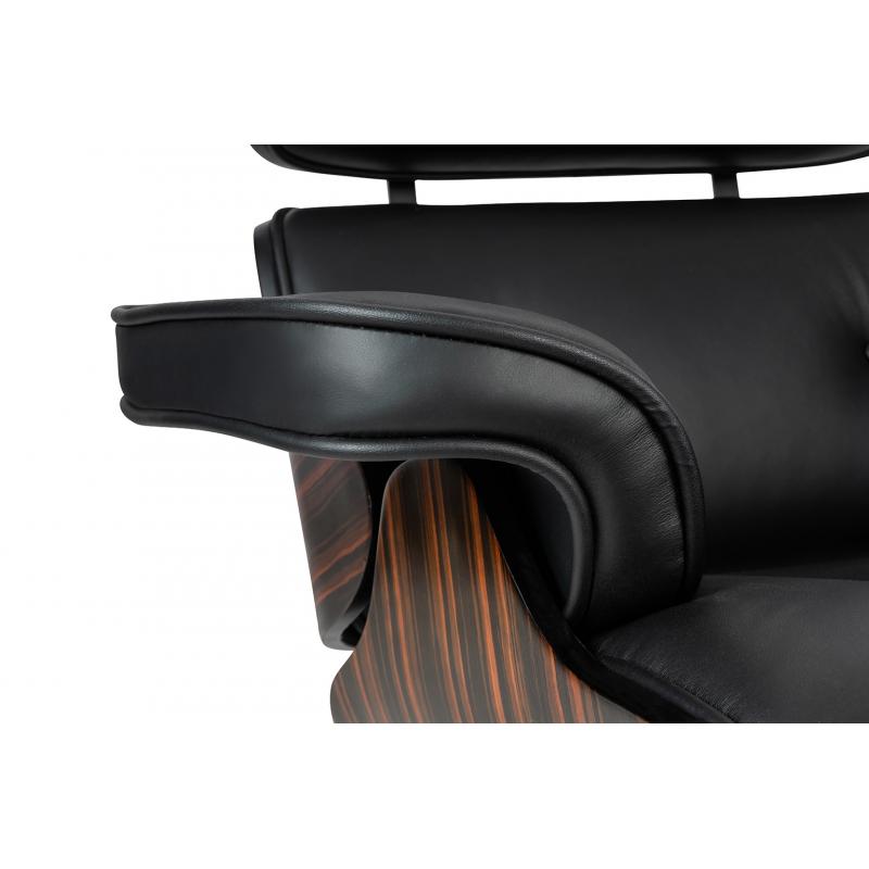 Fotel LOUNGE czarny, sklejka heban - skóra naturalna