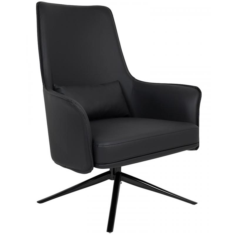 Fotel VICTOR czarny PU. Klasyczny i elegancki fotel z wysokim oparciem odnajdzie swoje zastosowanie zarówno w nowoczesnej aranżacji, jak i przestrzeni biurowej. Victor tapicerowany jest w całości ekoskórą, a jego podstawę wykonano z malowanego na czarno metalu. Poduszka w zestawie oprócz wizualnej dekoracji reguluje głębokość siedziska, co poprawia komfort użytkowania.Głębokość siedziska: 56 cm Wysokość oparcia: 67 cm Sposób wysyłki: Paleta.