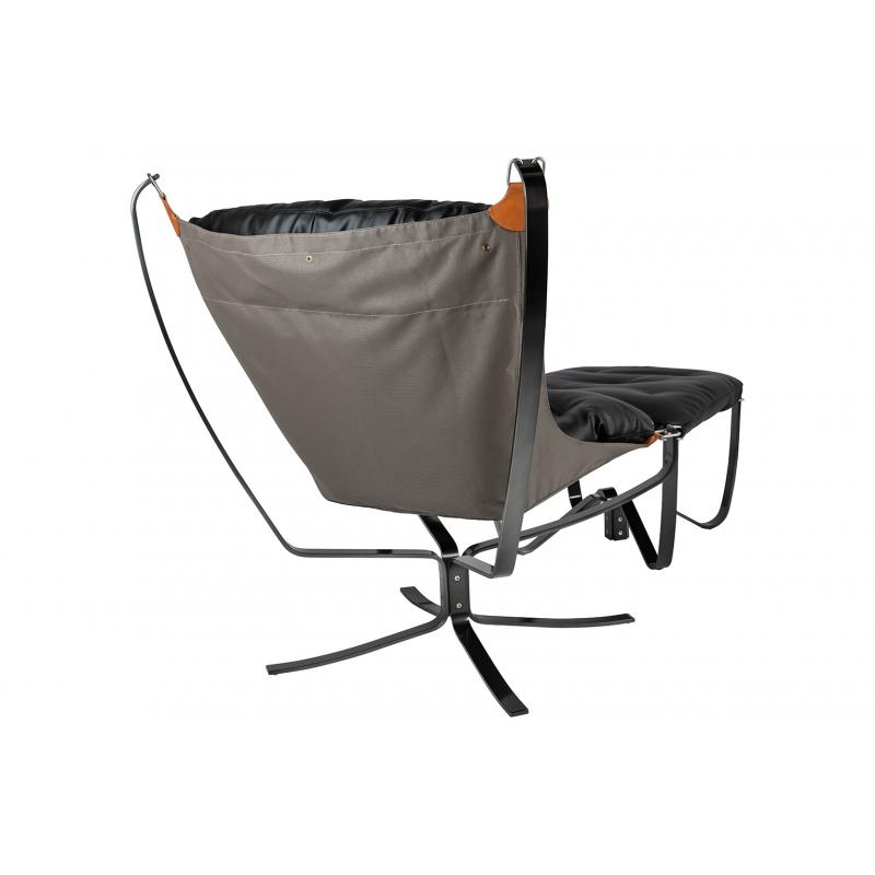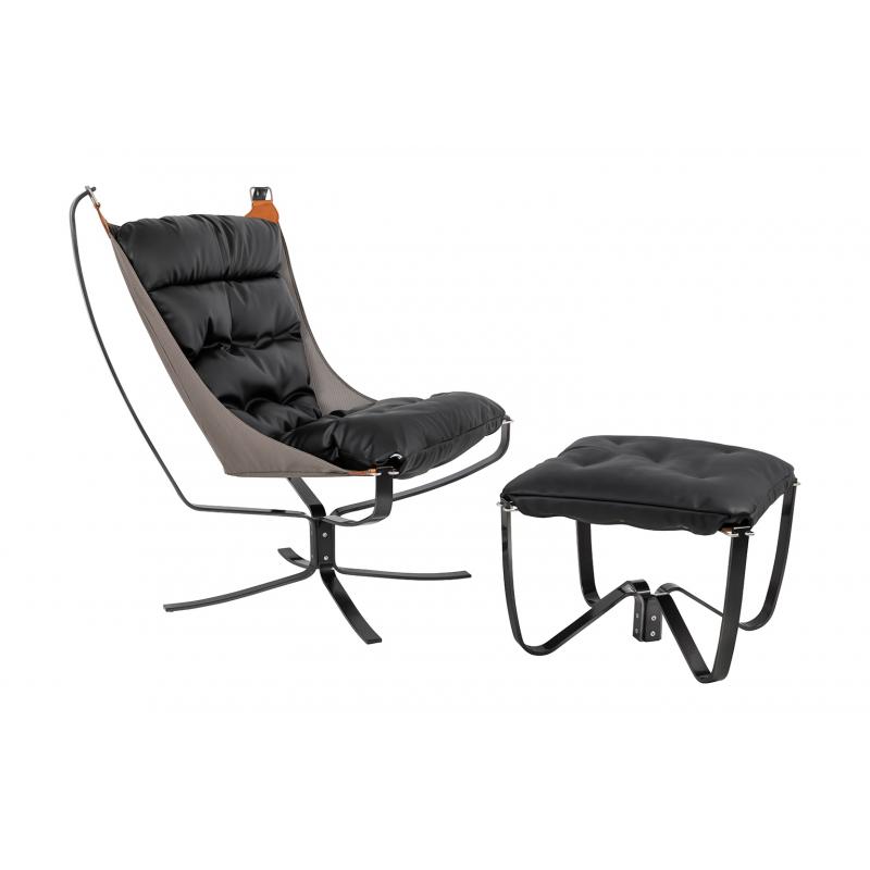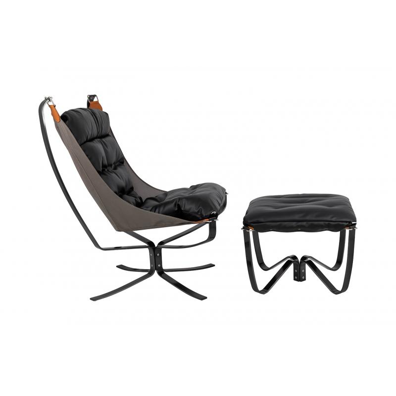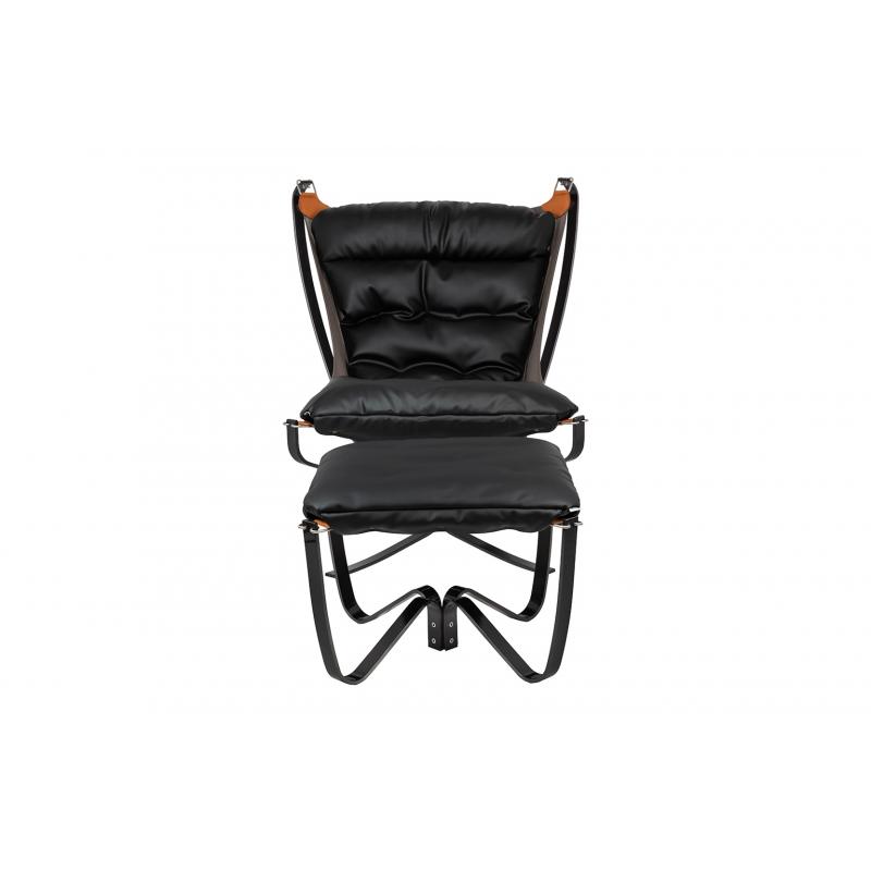 Fotel ARNI HIGH z podnóżkiem czarny - ekoskóra, stal szczotkowana