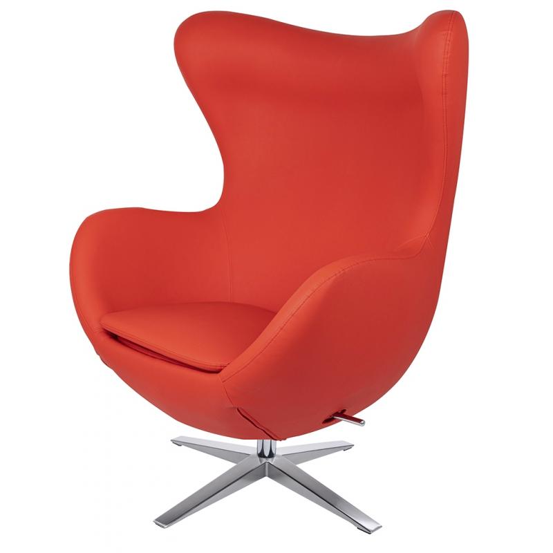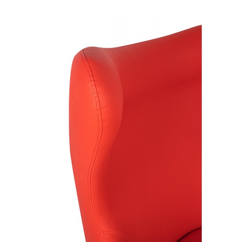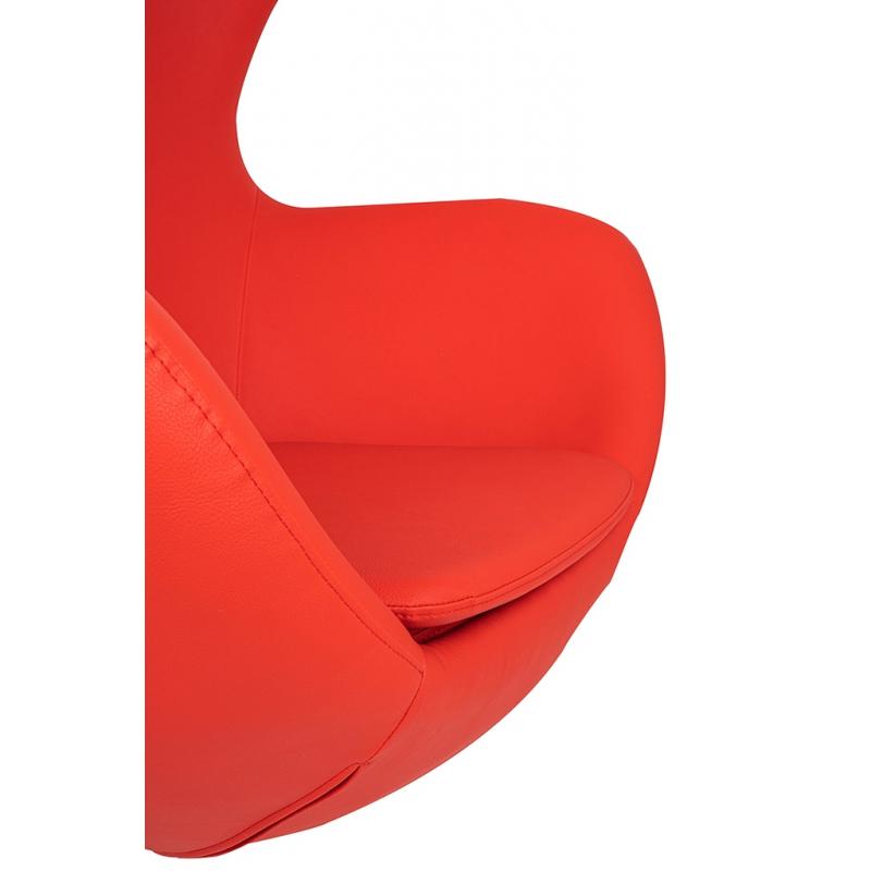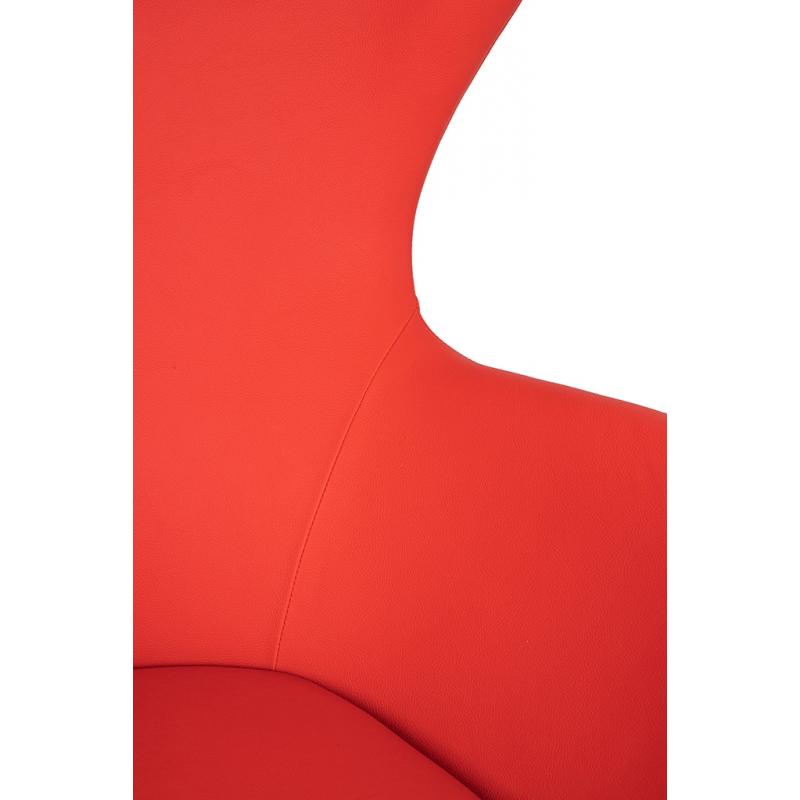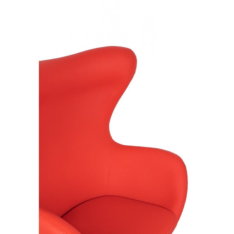 Fotel EGG SZEROKI kształtem nawiązuje do jednego z najbardziej znanych projektów. Fotel wyposażony jest w mechanizm obrotowy z funkcją bujania. Dodatkowo fotel można zablokować w pozycji odchylonej lub pionowej. Ciekawym elementem, jest dekoracyjny suwak na plecach fotela. Fotel tapicerowany jest ekoskórą w kolorze czerwonym. Korpus fotela wykonany jest z metalu. Podstawa oraz uchwyt wykonane ze stali polerowanej.Waga netto 1 szt.: 22 kg Waga z opakowaniem: 25 kg Wymiary opakowania: 78 cm x 83