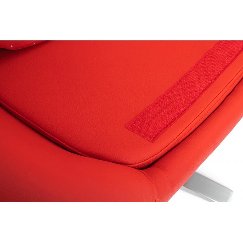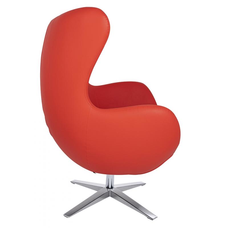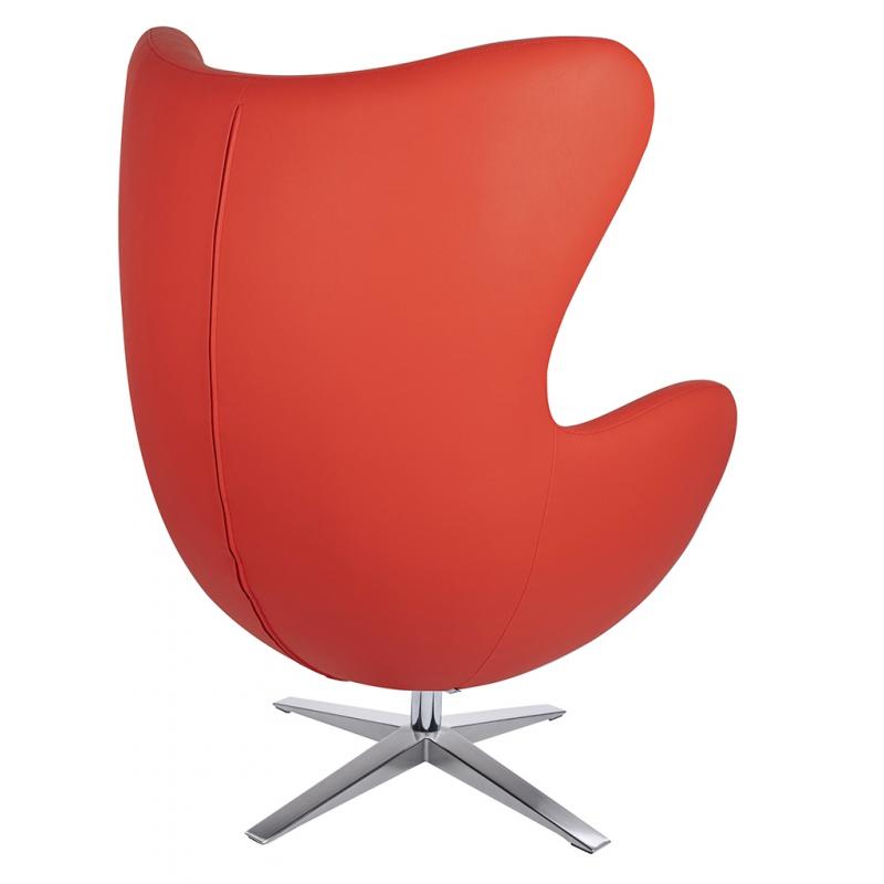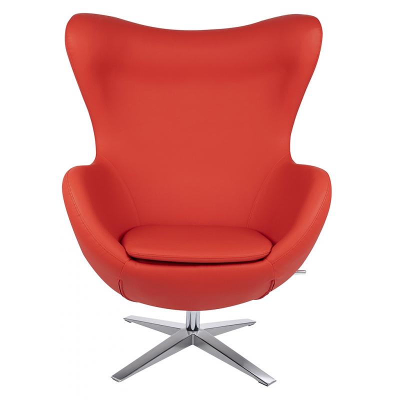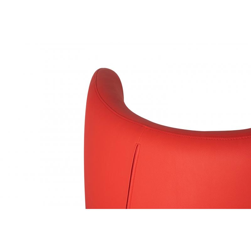 Fotel EGG SZEROKI kształtem nawiązuje do jednego z najbardziej znanych projektów. Fotel wyposażony jest w mechanizm obrotowy z funkcją bujania. Dodatkowo fotel można zablokować w pozycji odchylonej lub pionowej. Ciekawym elementem, jest dekoracyjny suwak na plecach fotela. Fotel tapicerowany jest ekoskórą w kolorze czerwonym. Korpus fotela wykonany jest z metalu. Podstawa oraz uchwyt wykonane ze stali polerowanej.Waga netto 1 szt.: 22 kg Waga z opakowaniem: 25 kg Wymiary opakowania: 78 cm x 83