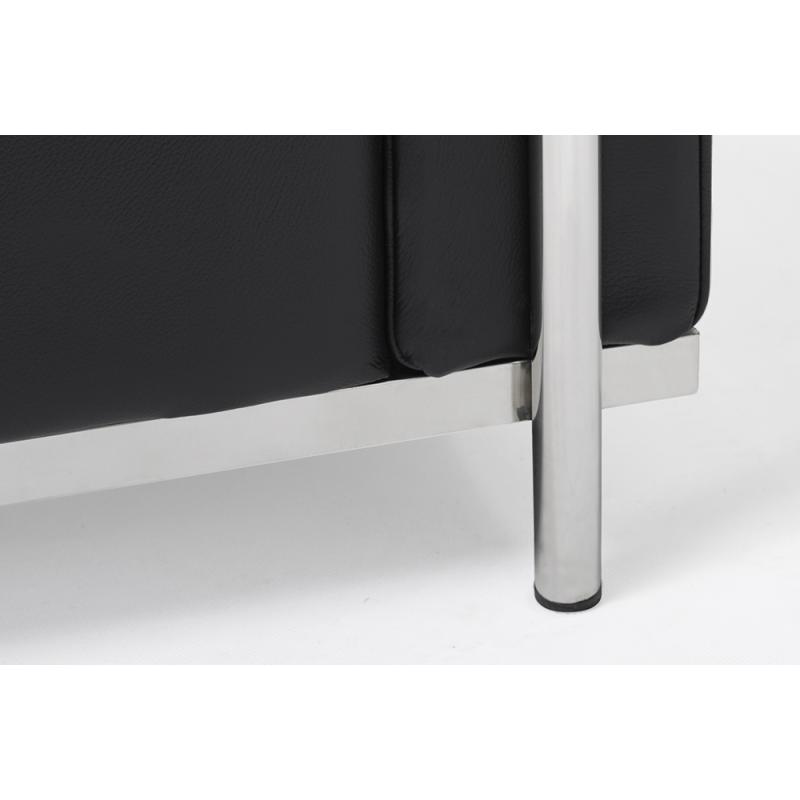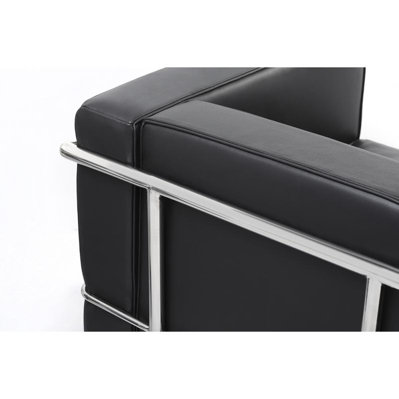 Fotel SOFT LC2 , elegancja w klasycznym wydaniu. Naturalna włoska skóra w czarnym kolorze, połączona z chromowanymi elemenetami. Dzięki szerokości 75 cm na fotelu można się wygodnie rozsiąść i wypocząć. Siedzisko jest na wysokości 42 cm, ułatwia to siadanie i wstawanie. Włoska skóra gwarantuje trwałość i doskonały wygląd na lata. Z kolei stelaż i nóżki fotela zrobione są z metalu w kolorze chrom, co dodaje elegancji, ale tez zapewnia stabilność. Klasyczny i minimalistyczny styl powoduje, że m