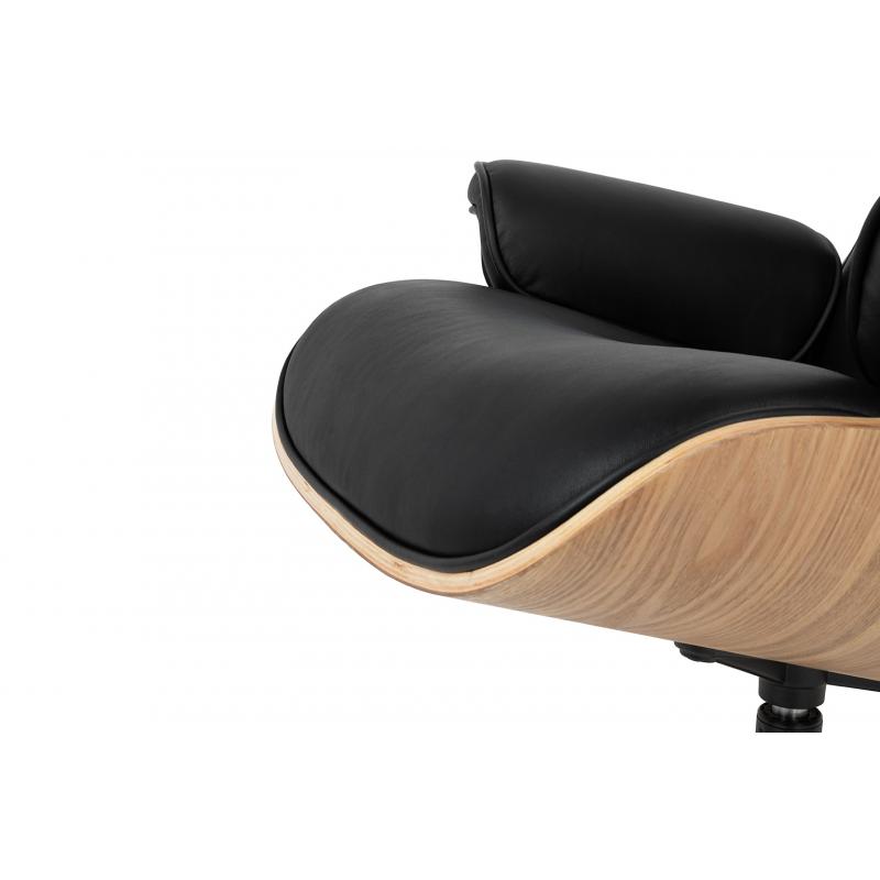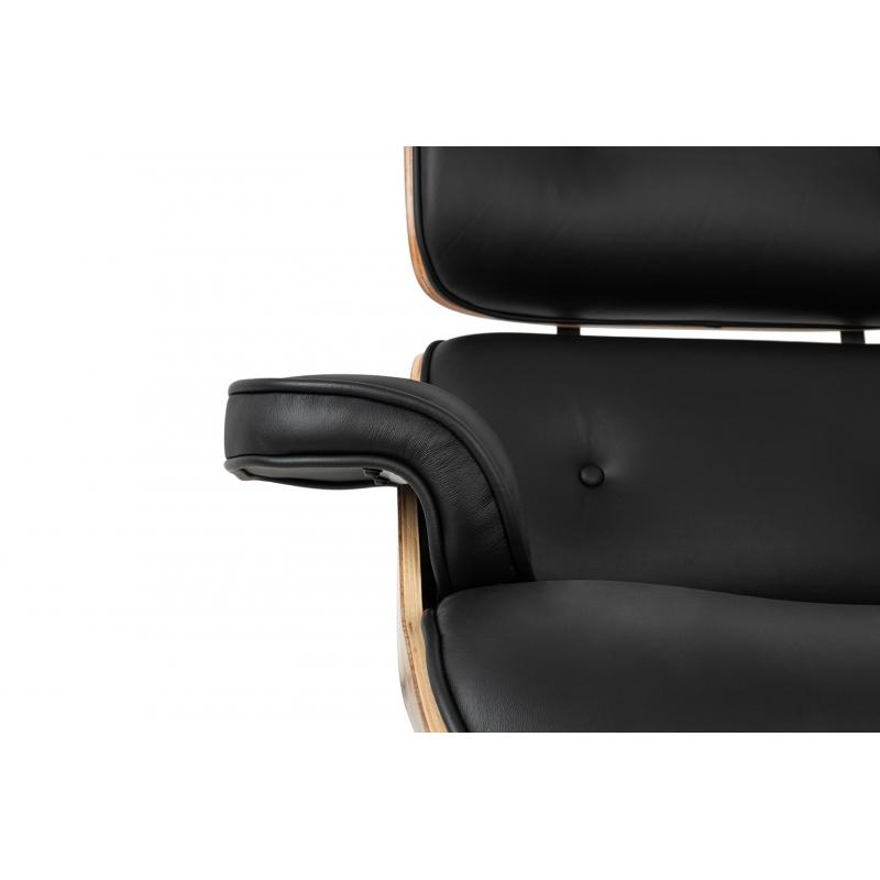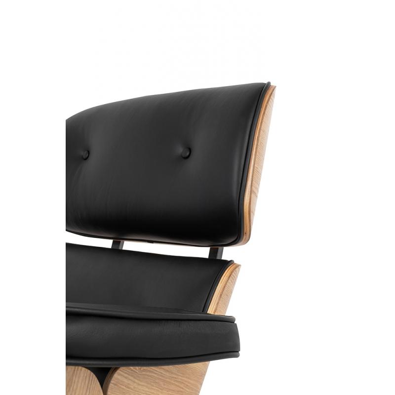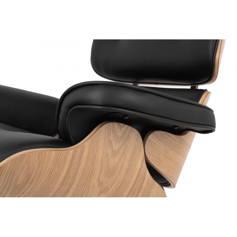 Fotel LOUNGE czarny, sklejka jesion - skóra naturalna