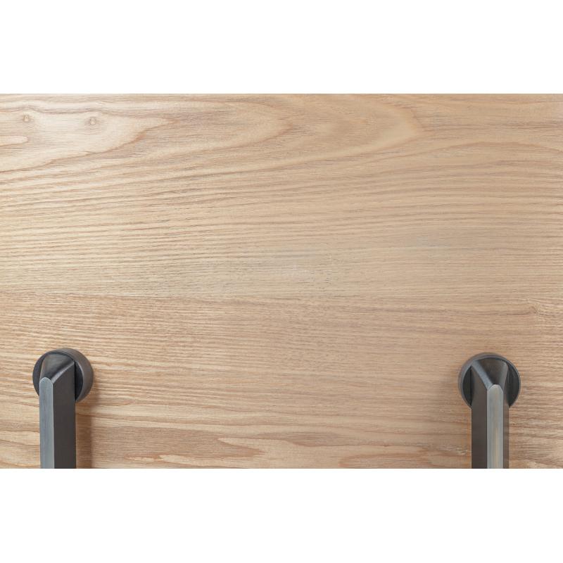 Fotel LOUNGE czarnym z jesionowym drewnem. Siedzisko, oparcie oraz podłokietniki tapicerowane są skórą naturalną w kolorze czarnym. Korpus fotela został wykonany z giętego na ciepło drewna jesionu. Podstawa oraz elementy metalowe wykonane zostały ze stali, malowanej proszkowo na kolor czarny matowy. Dla podkreślenia elegancji, podstawa oraz łączenia oparcia są dodatkowo spolerowane na wierzchniej stronie. Fotel jest obrotowy. Lounge doskonale sprawdzi się w salonie lub gabinecie. Dzięki temu że