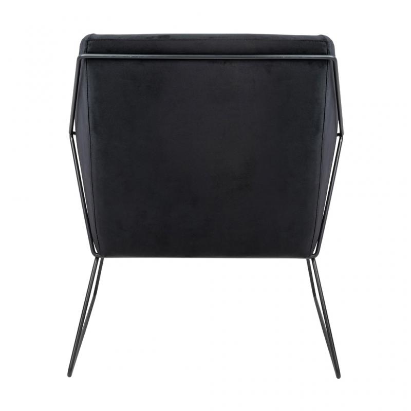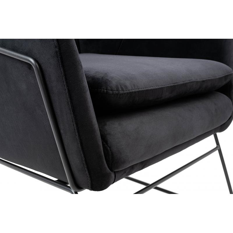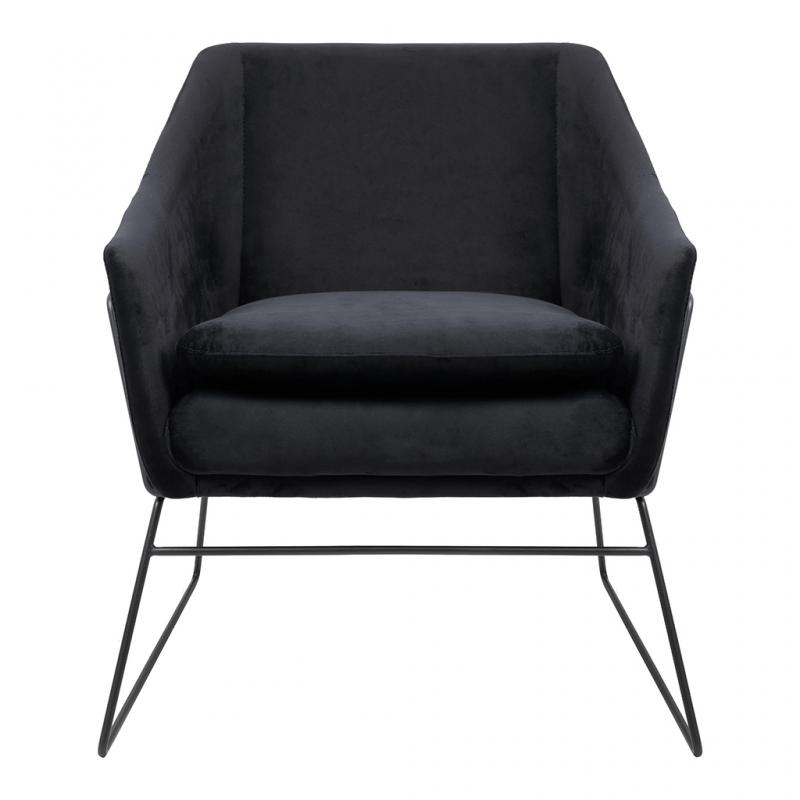 Fotel EMMA. Siedzisko oraz poduszka tapicerowane są aksamitnym welurem w kolorze czarnym. Metalowa podstawa lakierowana na kolor czarny nadaje Emmie oryginalnego charakteru.Możliwość personalizacji obicia, wyjątkowy design oraz solidne wykonanie sprawia, że fotel doskonale odnajdzie się w każdej aranżacji.Głębokość siedziska: 52 cm Wymiar poduszki: 55 cm x 47 cm x 6 cm Sposób wysyłki: Paleta.