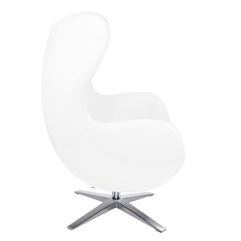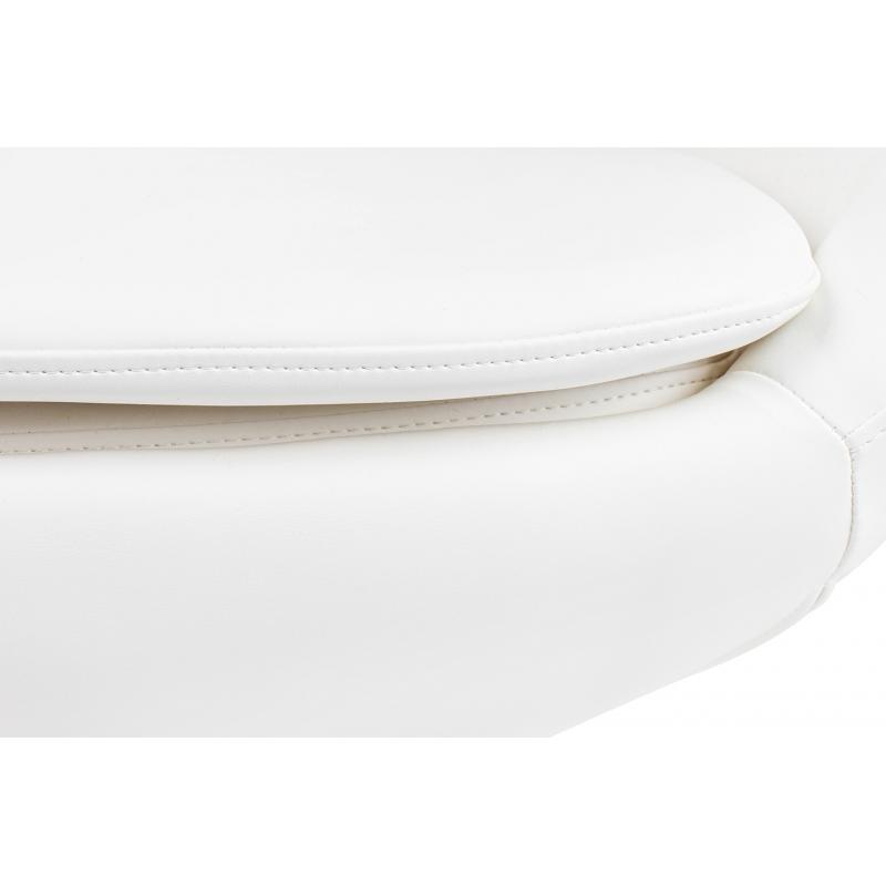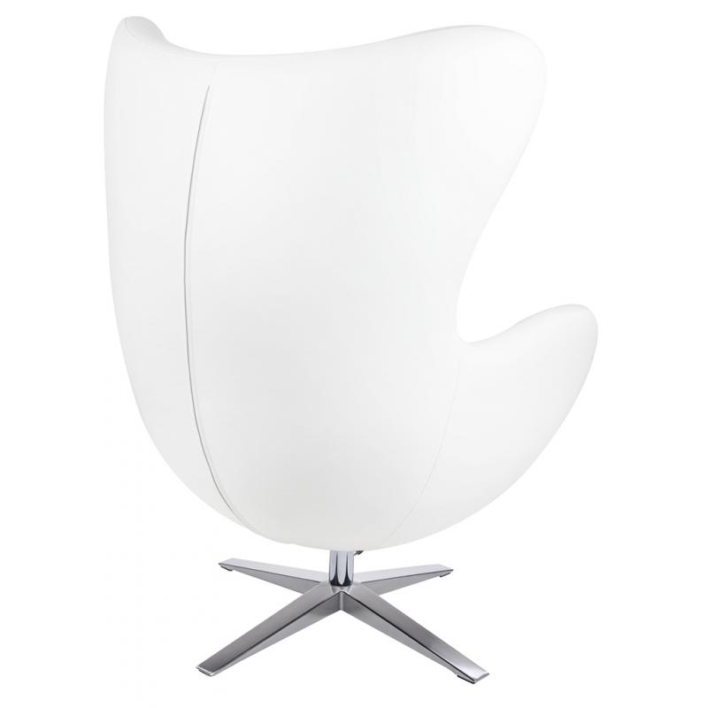 Fotel EGG SZEROKI kształtem nawiązuje do jednego z najbardziej znanych projektów. Fotel wyposażony jest w mechanizm obrotowy z funkcją bujania. Dodatkowo fotel można zablokować w pozycji odchylonej lub pionowej. Ciekawym elementem, jest dekoracyjny suwak na plecach fotela. Fotel tapicerowany jest ekoskórą w kolorze białym. Korpus fotela wykonany jest z metalu. Podstawa oraz uchwyt wykonane ze stali polerowanej.Waga netto 1 szt.: 22 kg Waga z opakowaniem: 25 kg Wymiary opakowania: 78 cm x 83 cm