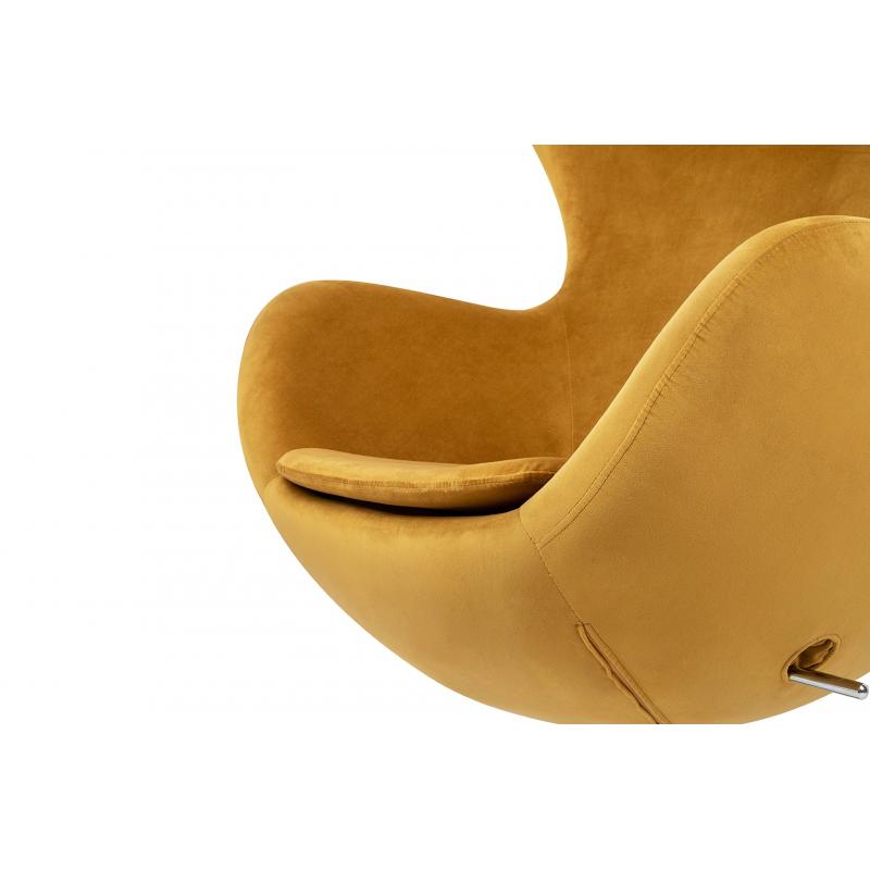 Fotel EGG SZEROKI VELVET kształtem nawiązuje do jednego z najbardziej znanych projektów. Został wyposażony w mechanizm obrotowy z funkcją bujania. Dodatkowo fotel można zablokować w pozycji odchylonej lub pionowej. Metalowy korpus jest tapicerowany tkaniną welurową (100% poliester). Podstawa oraz uchwyt wykonane ze stali polerowanej.Waga netto 1 szt.: 22 kg Waga z opakowaniem: 25 kg Wymiary opakowania: 78 cm x 83 cm x 110,5 cm Sposób wysyłki: Paleta Produkt do samodzielnego montażu: Tak