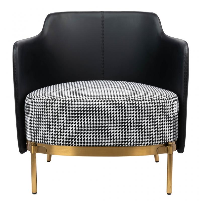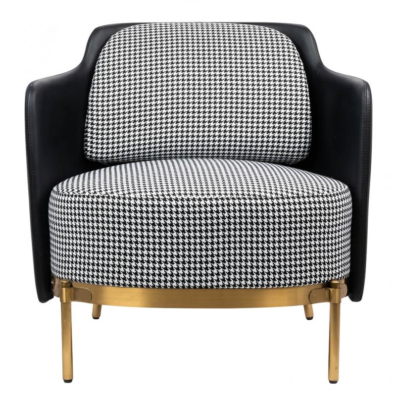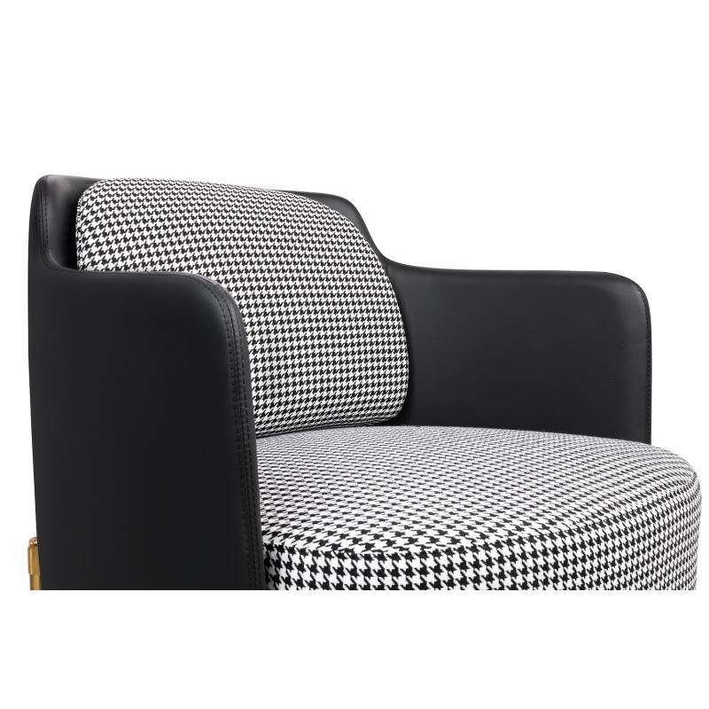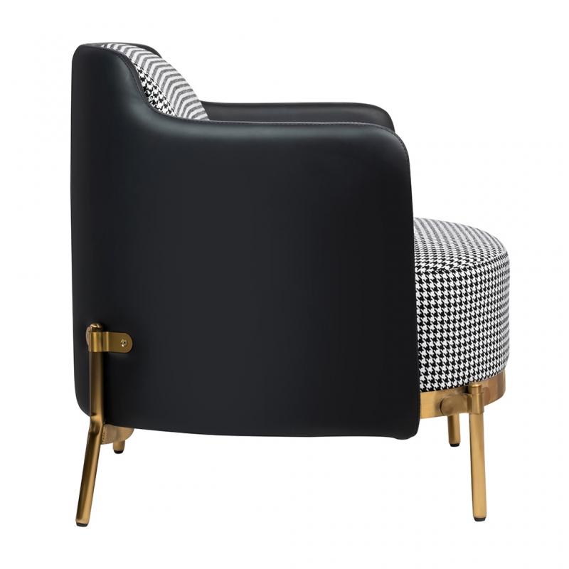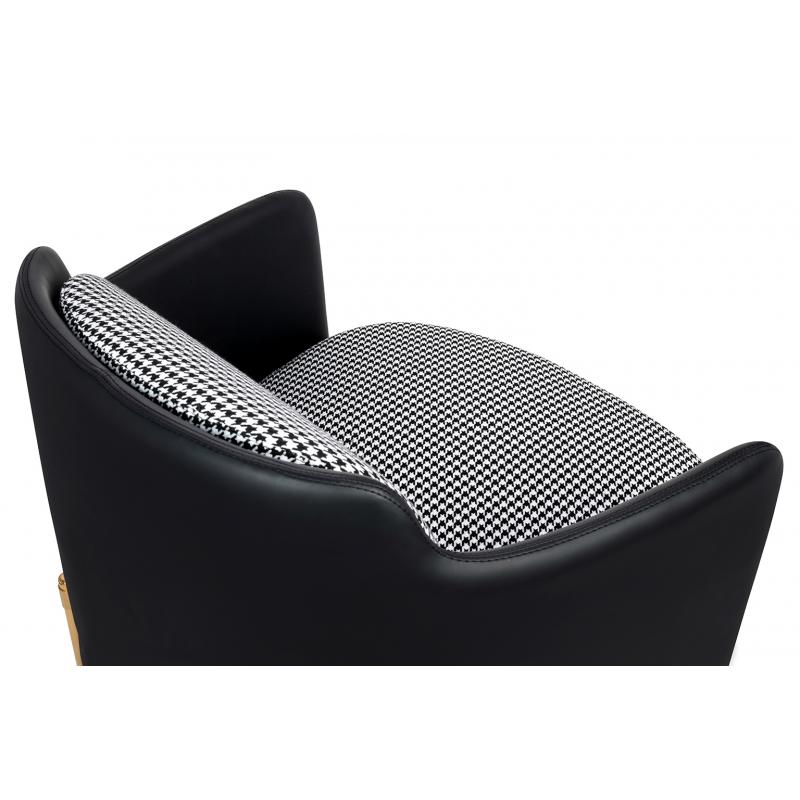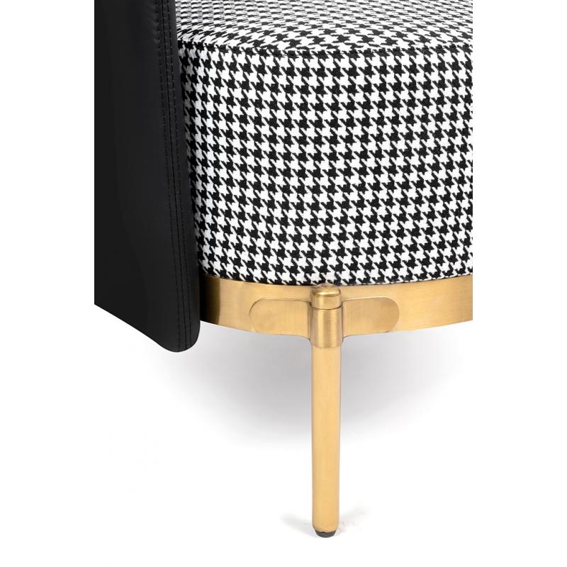 Fotel VENICE tkanina pepitka biało - czarna ekoskóra czarna - złota podstawa