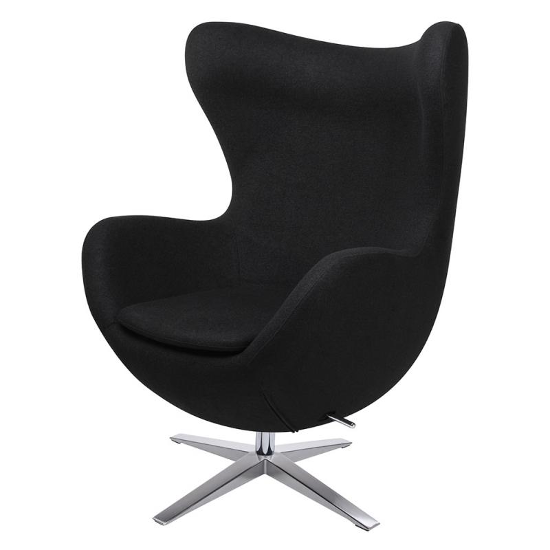 Fotel EGG SZEROKI czarny.4 - wełna, podstawa stal