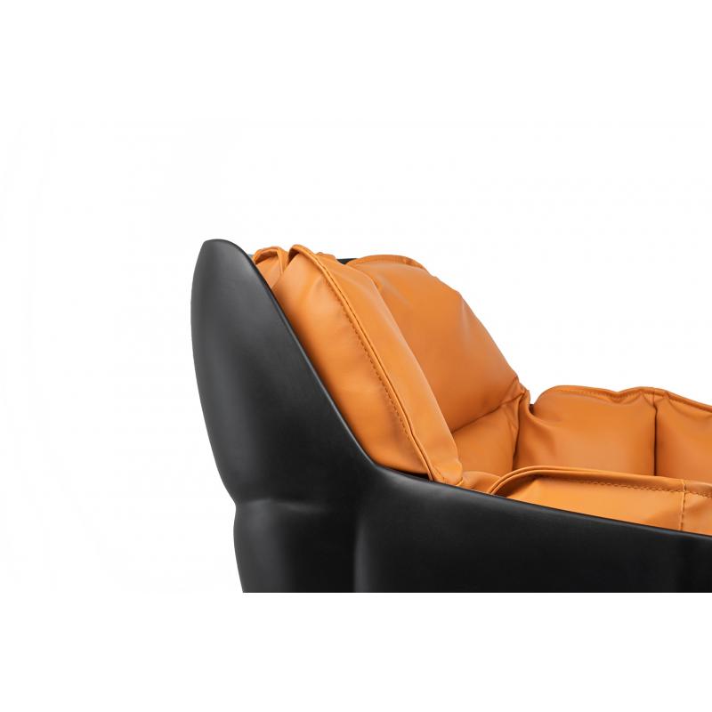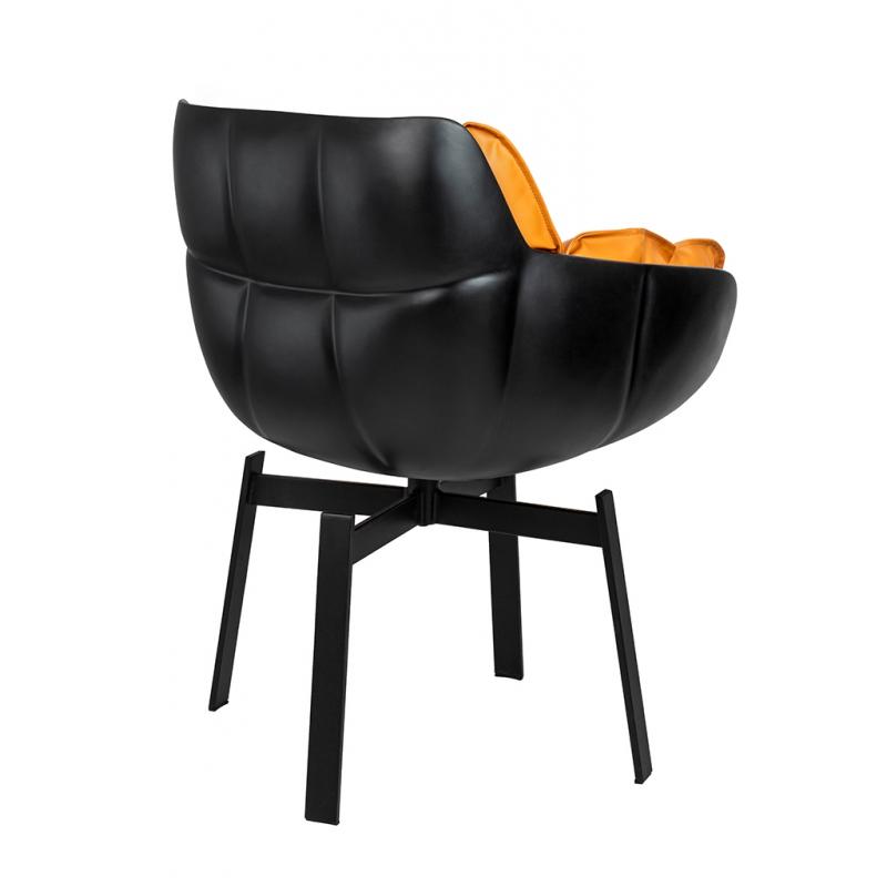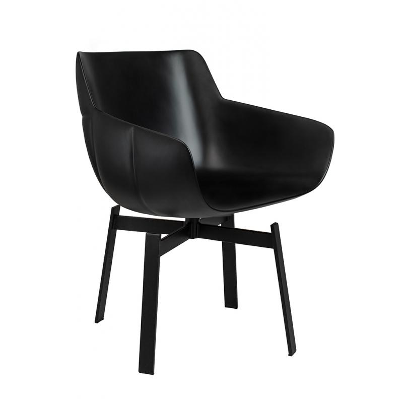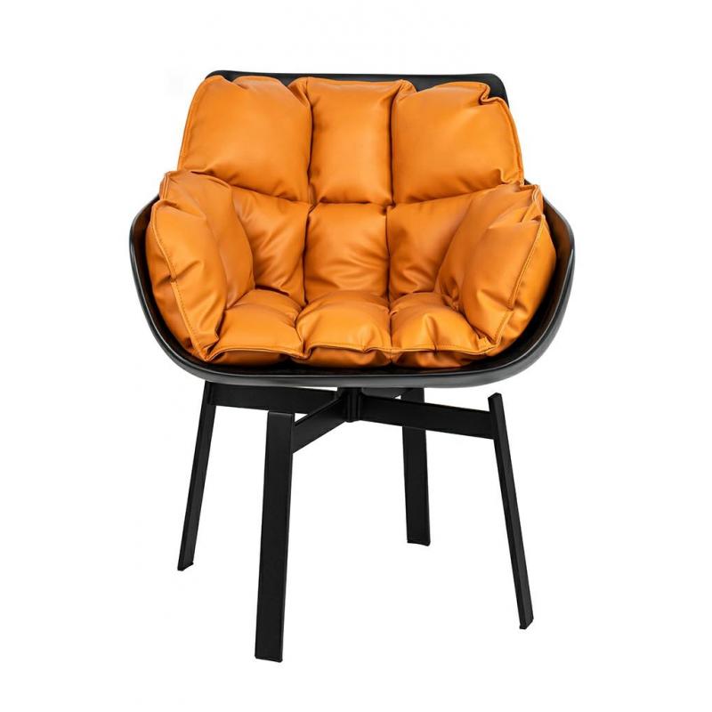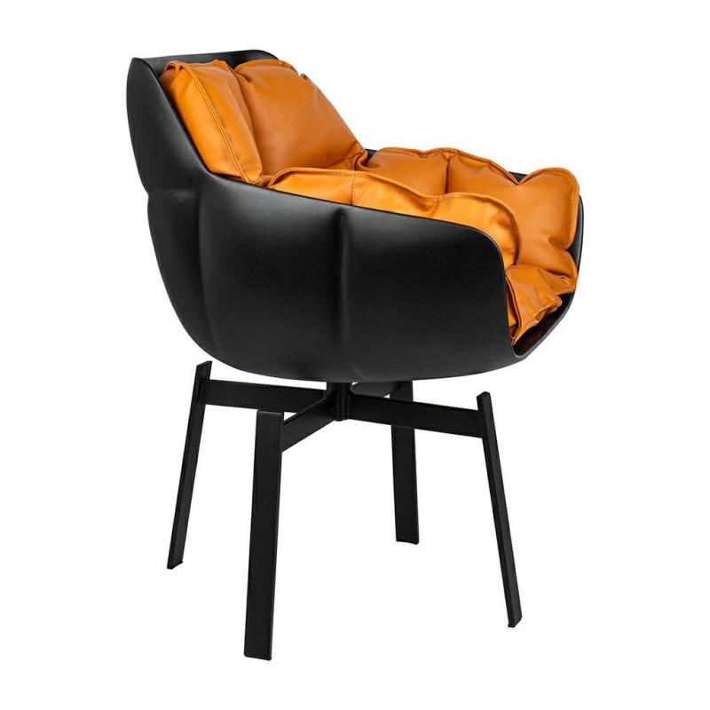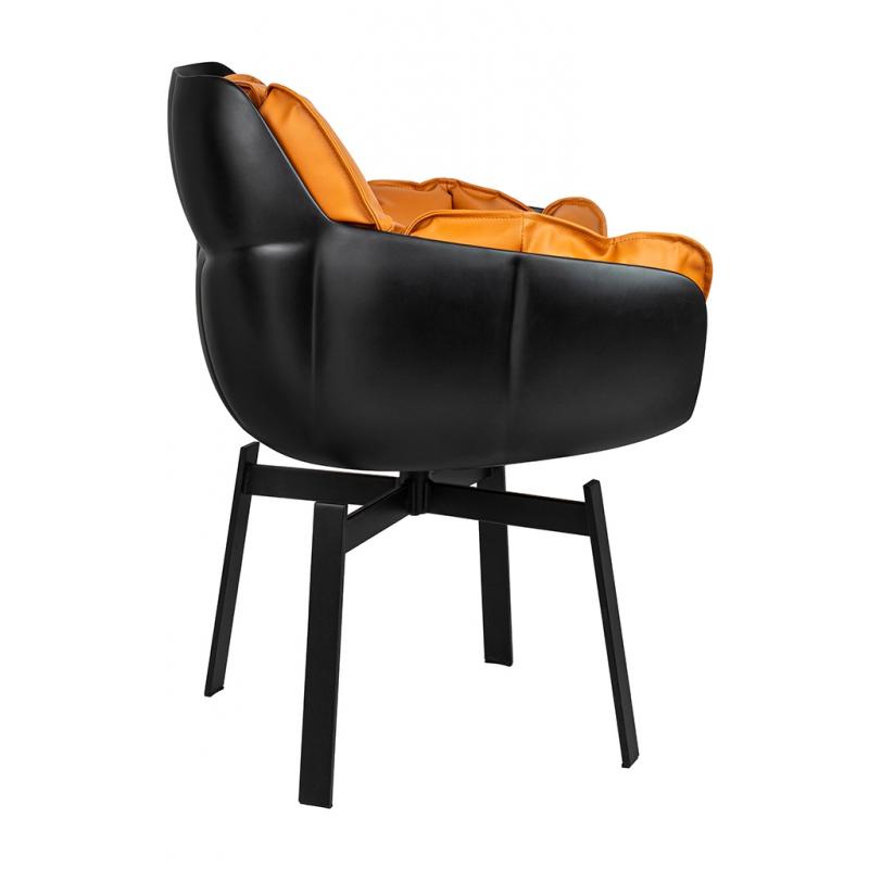 Krzesło obrotowe SHIBA brązowe / czarne. Nowoczesna forma harmonijnie łączy siedzisko z włókna szklanego wyłożone wygodną poduszką oraz stabilne, metalowe nóżki. Idealne rozwiązanie dla każdego miłośnika designu, który ceni wygodę i nowoczesny kształt. Eleganckie połączenie czarnego korpusu z koniakowym odcieniem poduszki tapicerowanej ekoskórą. Fotel SHIBA doskonale sprawdza się w domowym salonie, jak również w miejscach użyteczności publicznej.Szerokość siedziska 45 cm Głębokość siedziska 45