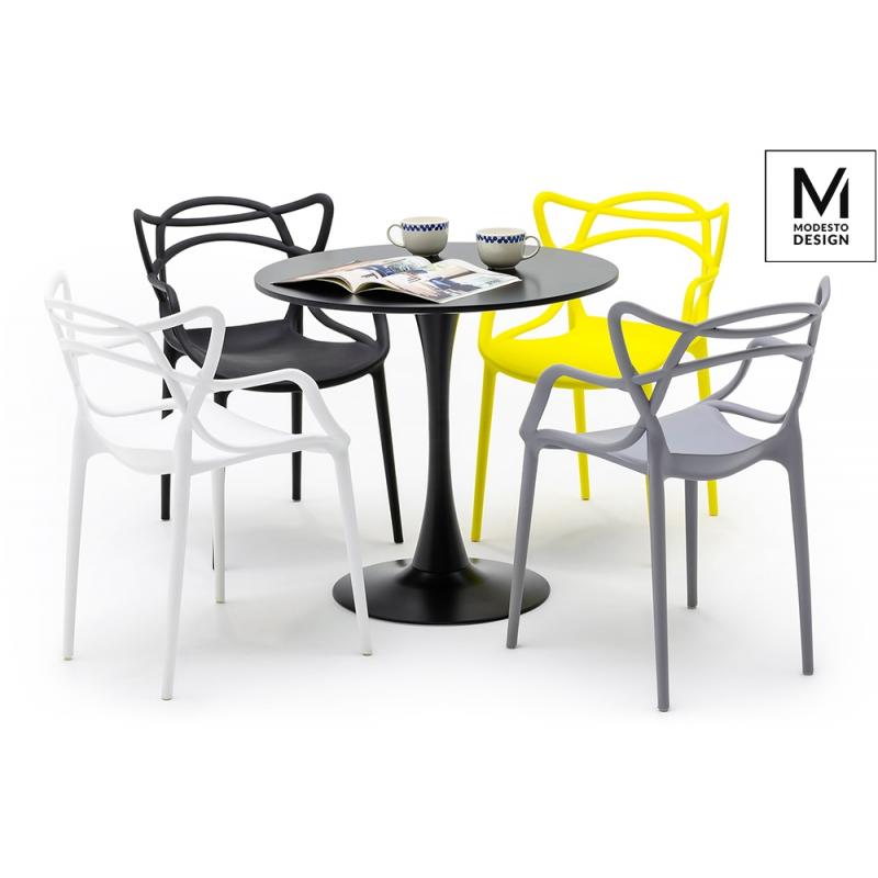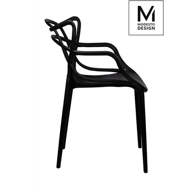 Krzesło HILO marki MODESTO DESIGN HILO wykonane zostało w całości z polipropylenu w kolorze czarnym matowym.Szerokość siedziska: 40 cm Głębokość siedziska: 45 cm Wysokość oparcia: 37 cm Szerokość oparcia: 53 cm Rozstaw nóg (szerokość): 50 cm Rozstaw nóg (głębokość): 50 cm Waga netto 1 szt.: 4 kg Waga opakowania: 5 kg Sposób wysyłki: Paczka Wymiary paczki: 77 cm x 56 cm x 97 cm Produkt złożony: Tak