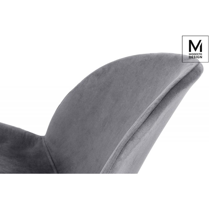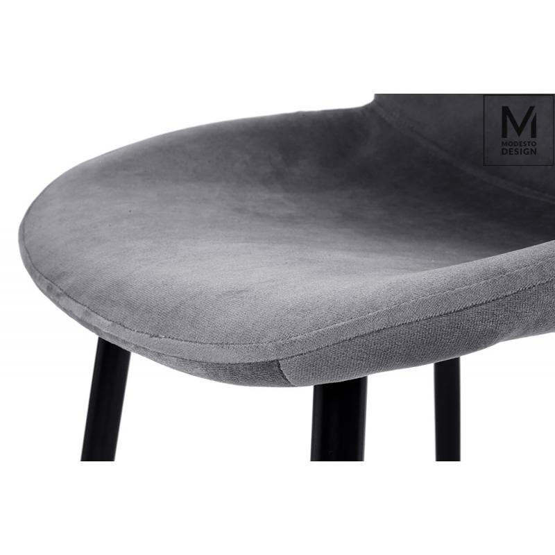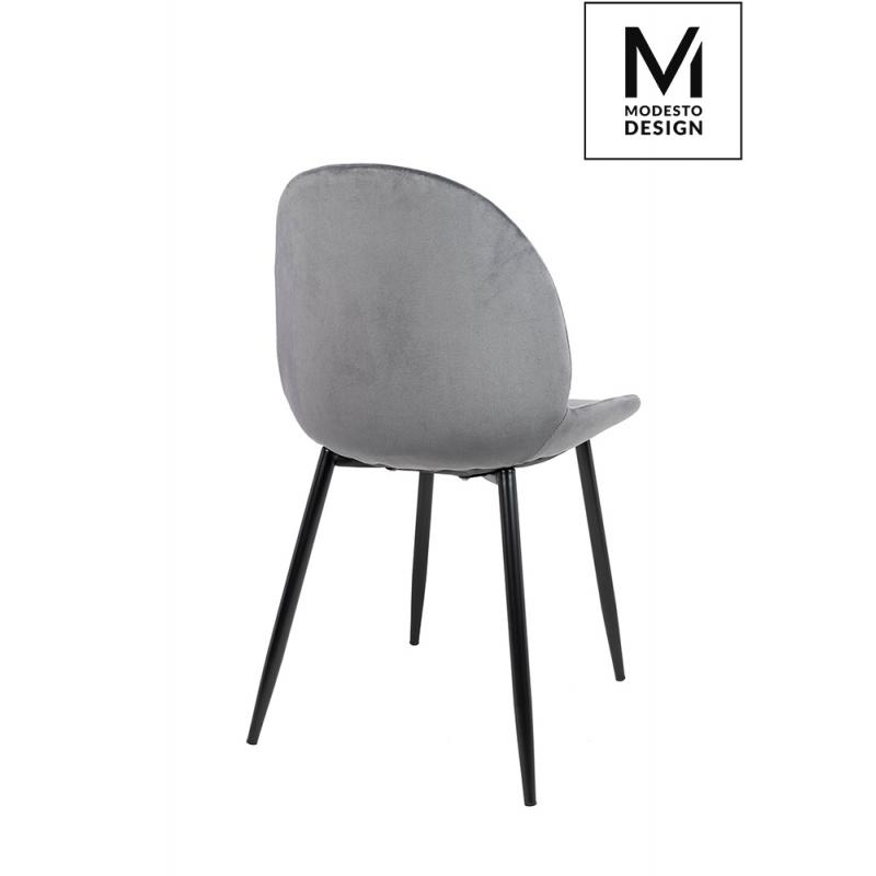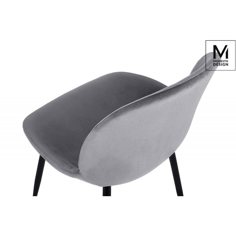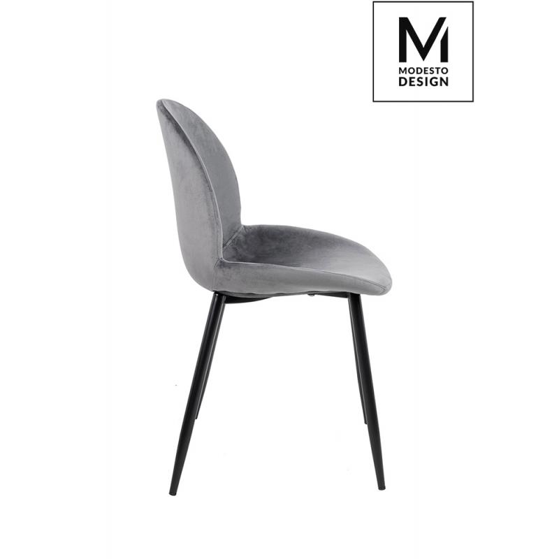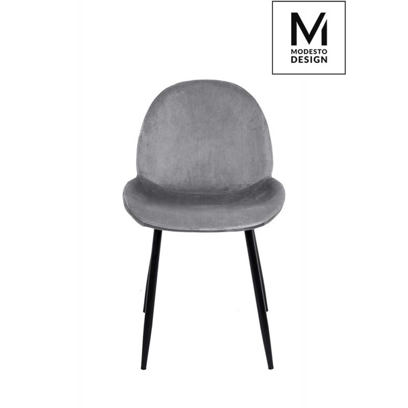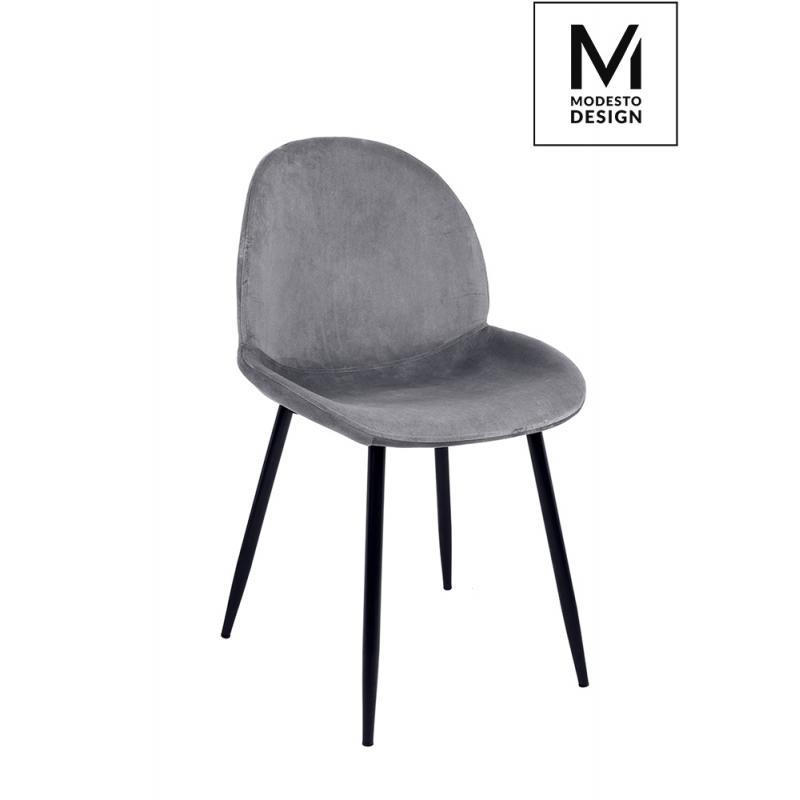Krzesło SCOOP marki MODESTO DESIGN. Tapicerowane jest miękkim i przyjemnym w dotyku welurem w kolorze szarym. Stabilna podstawa została wykonana z metalu w kolorze czarnym z matowym wykończeniem. Scoop to połączenie modnego Weluru i klasycznej Czerni. Krzesło doskonale pasuje do wnętrz nowoczesnych i klasycznych.Waga netto 1 szt.: 6 kg. Waga z opakowaniem: 6,4 kg. Wymiary opakowania: 60 cm x 55 cm x 51 cm. Sposób wysyłki: Paczka Produkt złożony: Nie