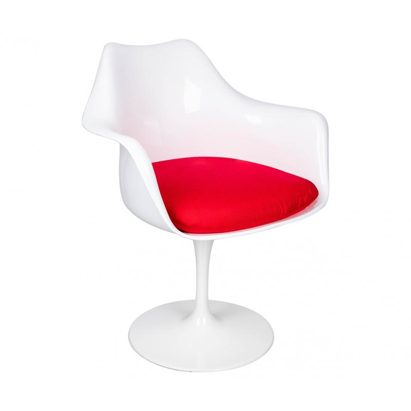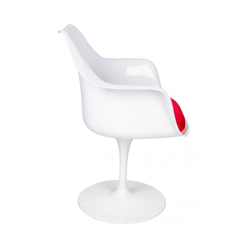 Fotel TULIP biały z czerwoną poduszką - ABS, podstawa metalowa
