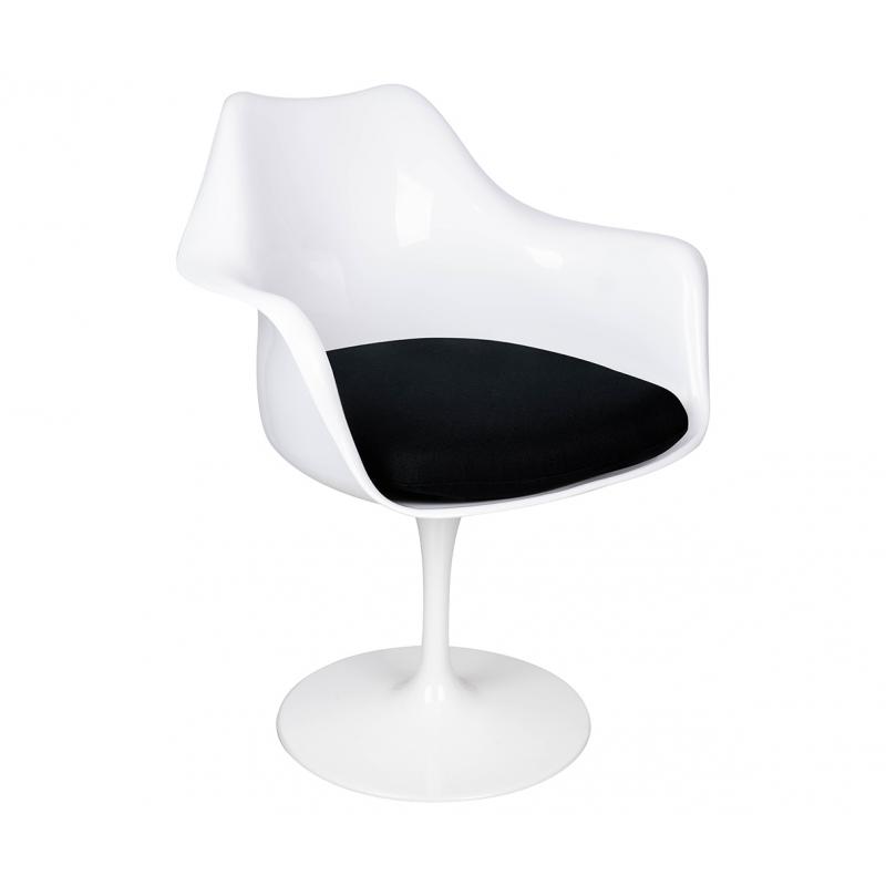 Fotel TULIP biały z czarną poduszką - ABS, podstawa metalowa