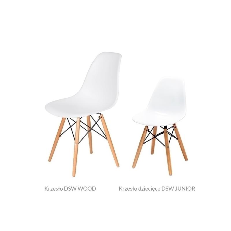 Krzesło dziecięce Junior Dsw Premium. Korpus wykonano z wytrzymałego polipropylenu. Materiału wyjątkowo odpornego na zarysowania i uszkodzenia. Jest łatwy w czyszczeniu, jego delikatna struktura utrudnia zsuwanie się. Nogi zrobiono z naturalnego drewna bukowego, łączenia z czarnego metalu.Waga netto 1 szt.: 3 kg Waga z opakowaniem: 3,5 kg Wymiary opakowania: 50 cm x 41 cm x 45 cm Sposób wysyłki: Paczka Produkt złożony: Nie
