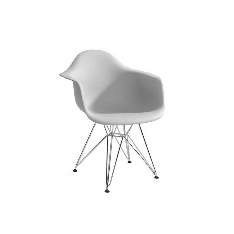 Fotel DAR SILVER. Siedzisko w całości wykonane jest z polipropylenu w jasnoszarym kolorze z matowym odcieniem. Wytrzymała podstawa zrobiona jest z chromowanego metalu. Dar Silver to wygodny fotel, który dzięki zastosowaniu tworzywa sztucznego jest łatwy w czyszczeniu. Doskonale sprawdzi się w jadalni, salonie lub pokoju dziennym.Wytrzymałość: 120 kg Waga netto: 5,5 kg Sposób wysyłki: Paczka Wymiary opakowania: 60 cm x 60 cm x 79 cm Produkt do samodzielnego montażu: Tak.