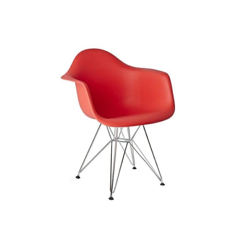 Fotel DAR SILVER. Siedzisko w całości wykonane jest z polipropylenu w kolorze krwistej czerwieni z matowym odcieniem. Wytrzymała podstawa zrobiona jest z chromowanego metalu. Dar Silver to wygodny fotel, który dzięki zastosowaniu tworzywa sztucznego jest łatwy w czyszczeniu. Doskonale sprawdzi się w jadalni, salonie lub pokoju dziennym.Wytrzymałość: 120 kg Waga netto: 5,5 kg Sposób wysyłki: Paczka Wymiary opakowania: 60 cm x 60 cm x 79 cm Produkt do samodzielnego montażu: Tak.