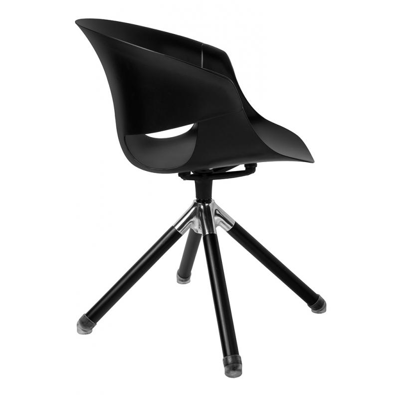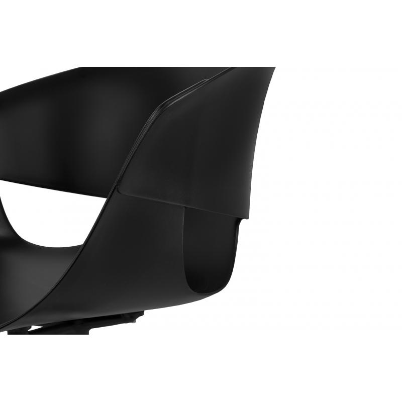 Krzesło obrotowe FALK to produkt stworzony dla zwolenników uniwersalnych rozwiązań, lecz idących z duchem czasu. Profilowane siedzisko wykonane z wysokiej jakości polipropylenu w kolorze czarnym doskonale sprawdzi się w niemal każdej przestrzeni domowej jak też publicznej. Pozornie lekką konstrukcję wzmacniają solidne drewniane nogi z jesionu w kolorze czarnym. Krzesło jest wyposażone w transparentne stopki z tworzywa, w celu ochrony powierzchni podłogi.Wysokość oparcia: 38 cm Szerokość oparcia: 48 cm Wysokość do krawędzi siedziska: 44 cm Szerokość siedziska 43 cm Głębokość siedziska 43 cm Rozstaw nóg (szerokość przód) 48 cm Rozstaw nóg (szerokość tył) 48 cm Rozstaw nóg (głębokość) 48 cm Wysokość nóg: 45 cm Wysokość do podłokietników: 67 cm Długość podłokietników: 20 cm Szerokość podłoki