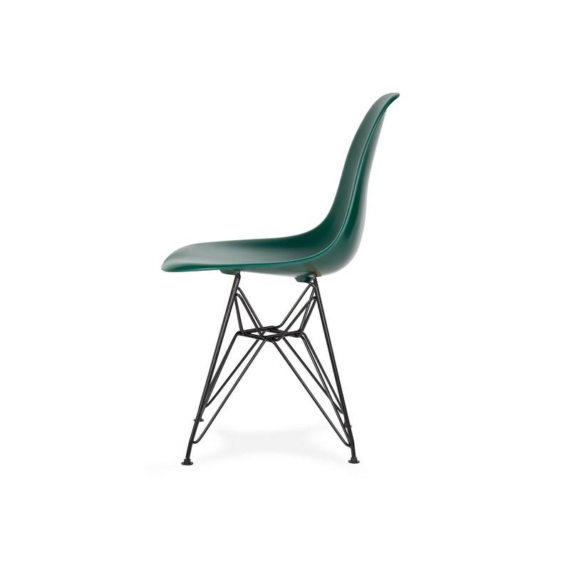 Krzesło DSR BLACK myśliwska zieleń. Siedzisko i oparcie wykonane jest z tworzywa sztucznego. Nogi zrobione są ze stali lakierowananej proszkowo na kolor czarny matowy.Waga netto 1 szt.: 3.50 kg Sposób wysyłki: Paczka Produkt do samodzielnego montażu: Tak.