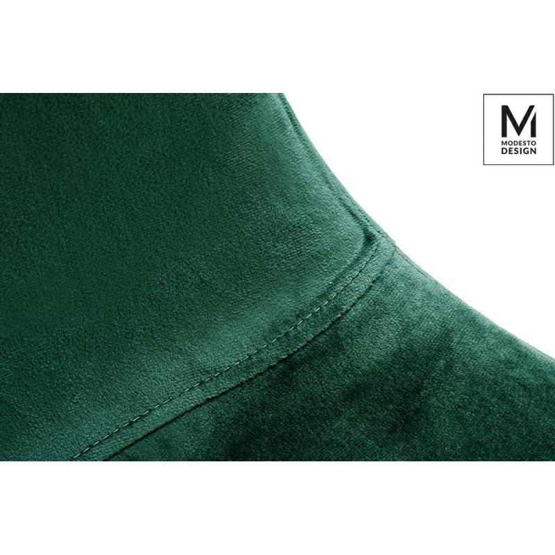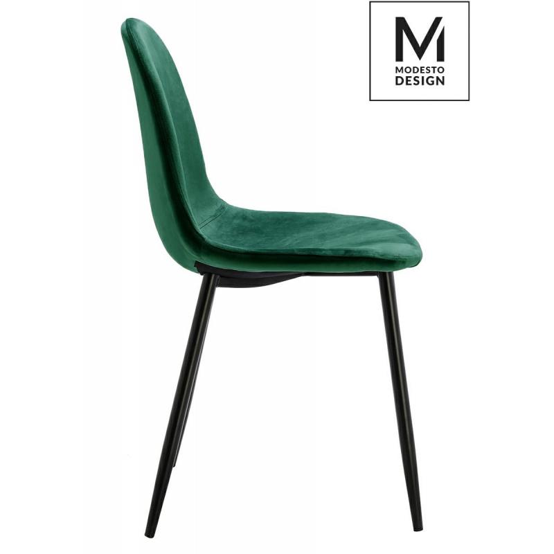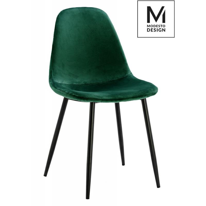Krzesło LUCY marki MODESTO DESIGN. Tapicerowane jest miękkim i przyjemnym w dotyku welurem. Stabilna podstawa została wykonana z metalu w kolorze czarnym z matowym wykończeniem. Lucy to połączenie modnego Weluru i eleganckiej zieleni. Krzesło doskonale pasuje do wnętrz nowoczesnych i klasycznych.Szerokość siedziska: 45 cm Głębokość siedziska: 40 cm Wysokość oparcia: 40 cm Szerokość oparcia: 36 cm Rozstaw nóg (szerokość): 40 cm Rozstaw nóg (głębokość): 48 cm Waga netto 1 szt.: 5 kg. Waga z opakowaniem: 5,5 kg. Wymiary opakowania: 61 cm x 57 cm x 48 cm. Sposób wysyłki: Paczka Produkt złożony: Tak