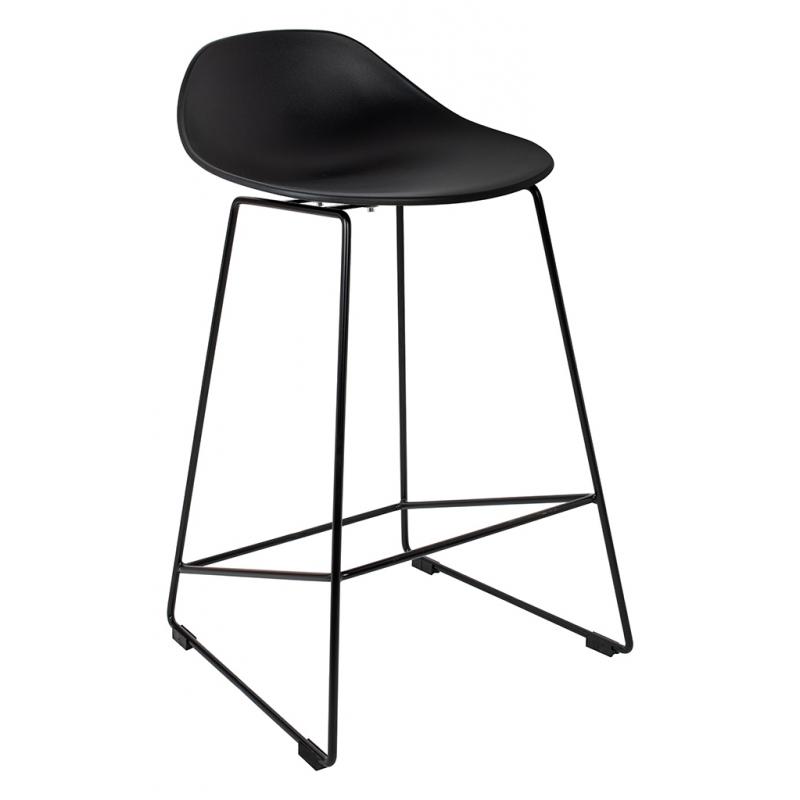 Krzesło barowe BENNY 66 czarne. Kwintesencja stylu w lekkiej formie. Dzięki prostocie wykonania jest niezwykle elegancki. Siedzisko zrobiono z wysokiej jakości polipropylenu w kolorze czarnym. Solidną podstawę ze stali malowanej proszkowo na czarno zabezpieczono stopkami. Komfortu dodaje praktyczny podnóżek umiejscowiony na odpowiedniej wysokości.Szerokość siedziska: 40 cm Głębokość siedziska: 38,5 cm Wysokość oparcia: 23,5 cm Szerokość oparcia: 41 cm Rozstaw nóg przód: 47 cm Rozstaw nóg tył: 47 cm Głębokość nóg: 50 cm Wysokość do podnóżka: 22,5 cm.