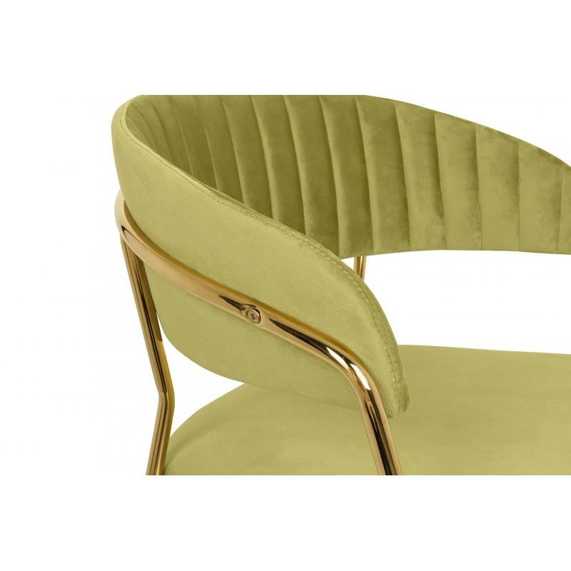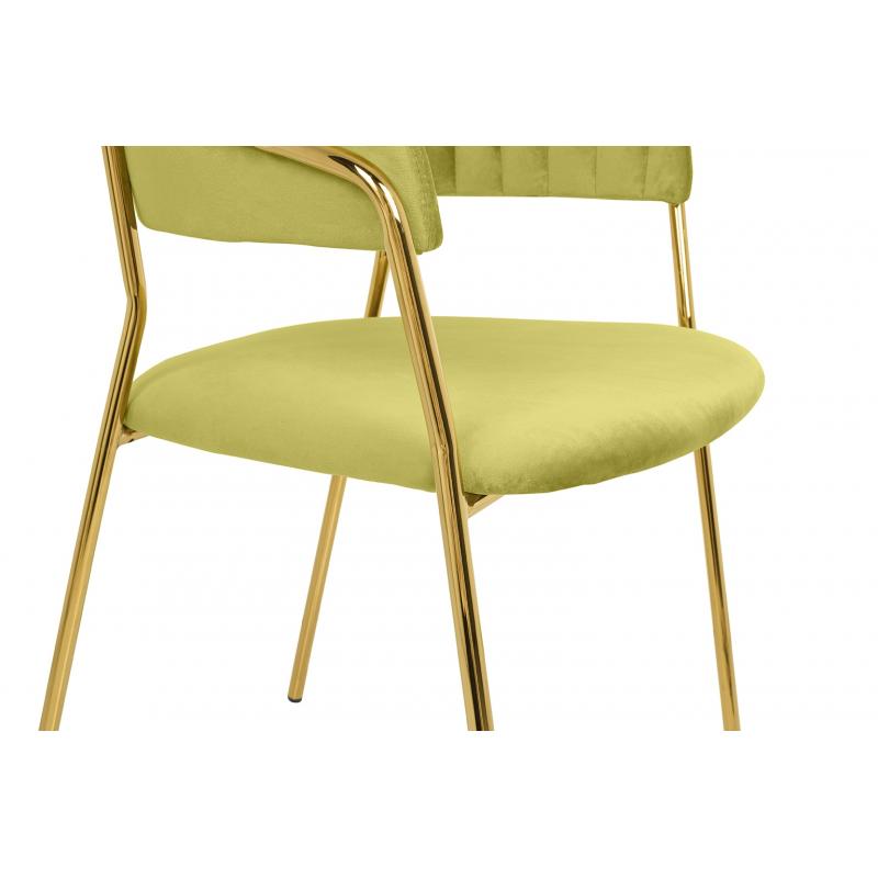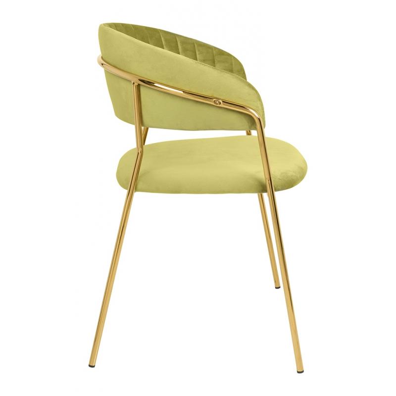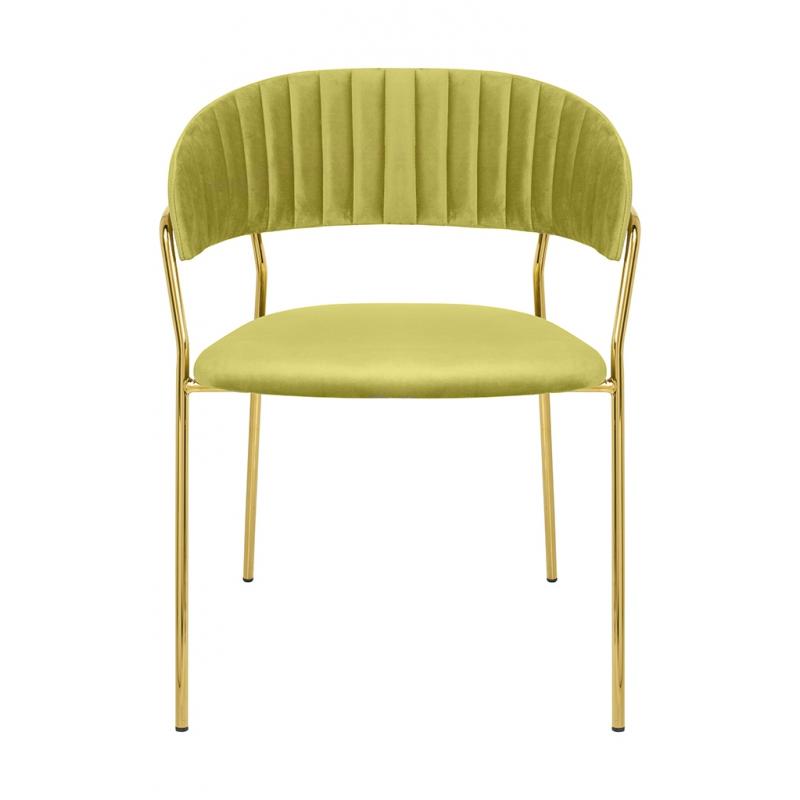 Krzesło Margo w modnym, jasnozielonym kolorze. Siedzisko i oparcie tapicerowane miękkim i przyjemnym w dotyku welurem. Pionowe przeszycia na oparciu dodają elegancji. Krzesło idealnie pasujące do wnętrz nowoczesnych i klasycznych.Szerokość siedziska: 48 cm Głębokość siedziska: 45 cm Wysokość oparcia: 34 cm Waga netto 1 szt.: 5,5 kg. Waga z opakowaniem: 7 kg. Wymiary opakowania: 78,5 cm x 58,5 cm x 63 cm. Sposób wysyłki: Paczka Produkt złożony: Tak