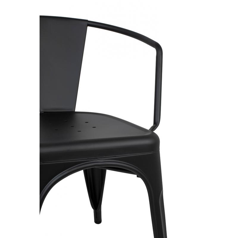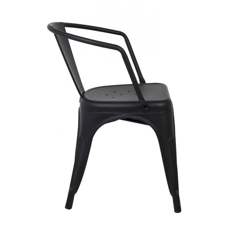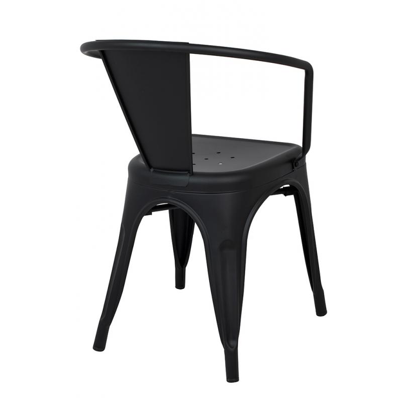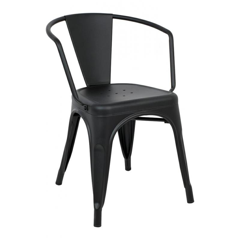 Krzesło TOWER ARM czarne. Ponadczasowe, uniwersalne krzesło z podłokietnikami, które uzupełni zarówno klasyczne, jak i loftowe oraz industrialne wnętrza. Wykonane w całości z lakierowanego metalu w czarnym, satynowym kolorze jest niezwykle stylowe i praktyczne. Odnajdzie swoje zastosowanie w zaciszu domowym i przestrzeniach publicznych.Szerokość siedziska: 37 cm Głębokość siedziska: 37 cm Wysokość oparcia: 31,5 cm Szerokość oparcia: 23 cm Długość podłokietników: 18 cm Szerokość podłokietników: 2 cm Rozstaw nóg przód: 45 cm Rozstaw nóg tył: 39 cm Głębokość nóg: 47 cm Możliwość sztaplowania: Tak Wymiary opakowania: 55 cm × 53 cm × 113 cm.