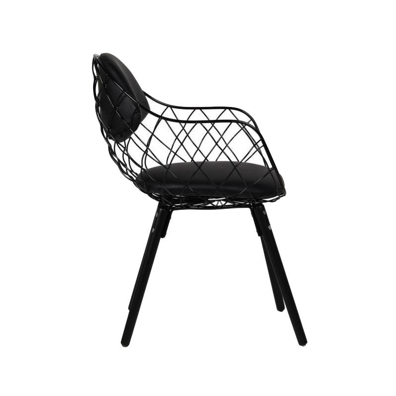 Krzesło DEMON czarne - metal, ekoskóra, podstawa drewniana