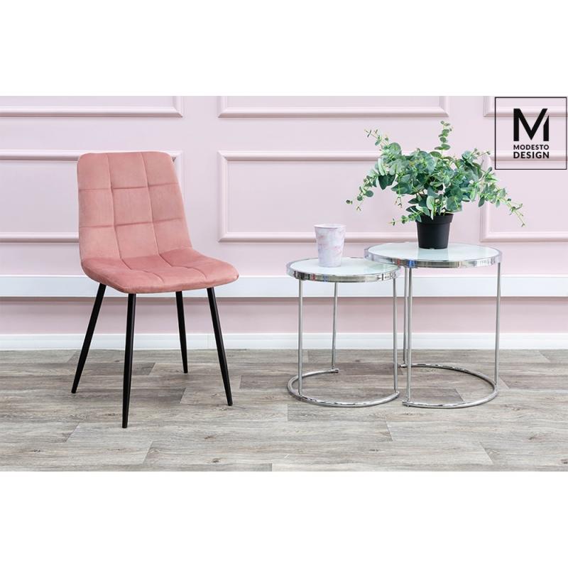 MODESTO krzesło CARLO pudrowy róż - welur, metal