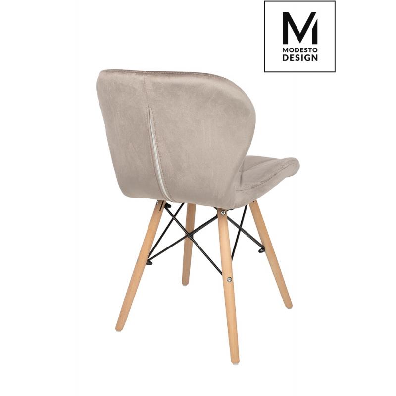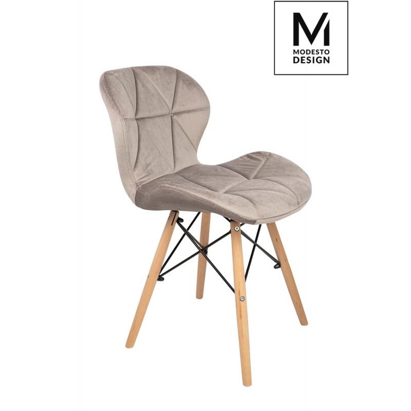 Krzesło KLIPP marki MODESTO DESIGN. Siedzisko i oparcie tapicerowane są tkaniną welurową w kolorze khaki. Nogi wykonane z drewna bukowego a łączenia ze stali lakierowanej na czarno.Szerokość siedziska 46 cm Głębokość siedziska 37 cm Wysokość oparcia 31 cm Szerokość oparcia 42 cm Rozstaw nóg (szerokość ) 39cm Rozstaw nóg (głębokość) 39 cm Wysokość nóg: 41 cm Sposób wysyłki: Paczka Produkt do samodzielnego montażu: Tak Wymiar opakowania: 57 cm x 54 cm x 52 cm.