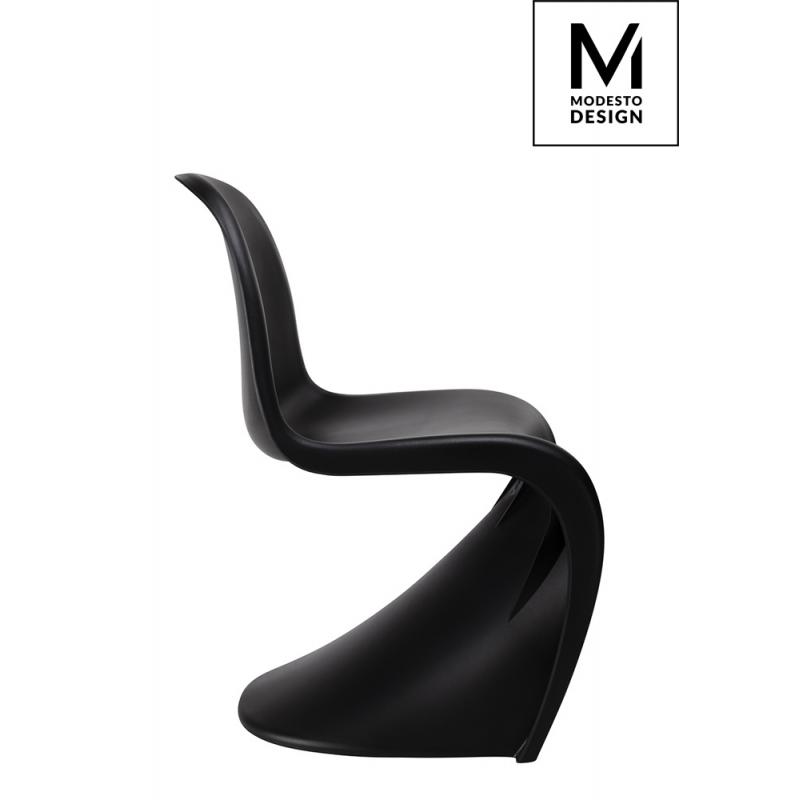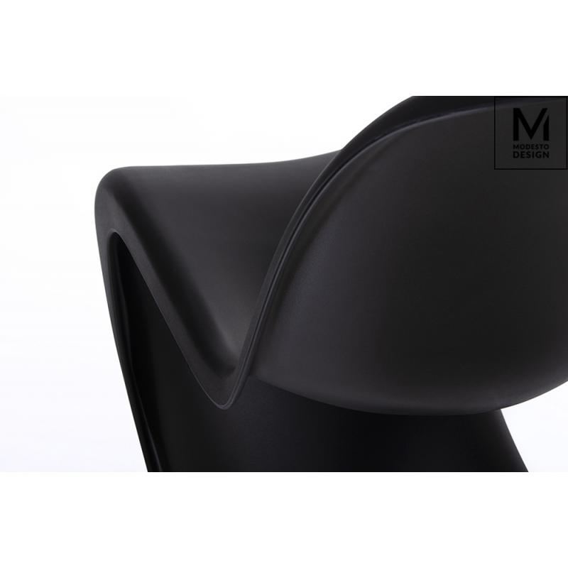 Krzesło HOVER marki MODESTO DESIGN. Hover jest w całości wykonany z tworzywa sztucznego (polipropylenu) w kolorze czarnym matowym.Waga netto 1 szt.: 5 kg Waga opakowania: 6 kg Sposób wysyłki: Paczka Produkt złożony: Tak Wymiary paczki: 92 cm x 84 cm x 51 cm