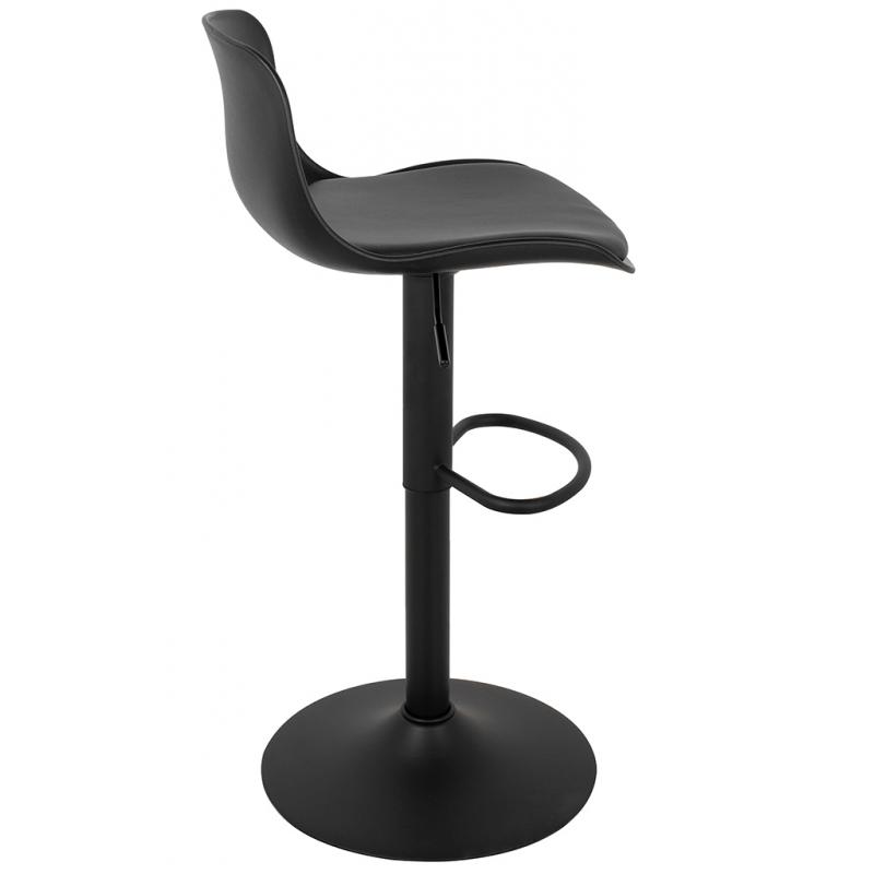 Krzesło barowe STOP TAP regulowane czarne. Hoker jest świetnym dodatkiem do kuchni, jeżeli chcemy sprawić, aby wyglądem i klimatem przypominała bar. Siedzisko z poduszką zostało wykonane z tworzywa sztucznego, a postawa z metalu w kolorze czarnym. Stop Tap ma regulowaną wysokość, podnóżek i obrotowe siedzisko, co zwiększa komfort użytkowania. Prosty i ponadczasowy design doskonale wkomponuje się w przestrzeń kuchenną, jak i część barową restauracji.Szerokość siedziska: 43 cm Głębokość siedziska: 36 cm Wysokość oparcia: 21 cm Szerokość oparcia: 40 cm Średnica podstawy: 43 cm Wysokość do podnóżka: 22-42 cm Szerokość podnóżka: 29 cm Głębokość podnóżka: 18 cm Średnica podnóżka: 2 cm Długość rączki od regulacji: 15 cm Możliwość sztaplowania: Nie Wymiary opakowania: 46 × 46 x 38 cm.