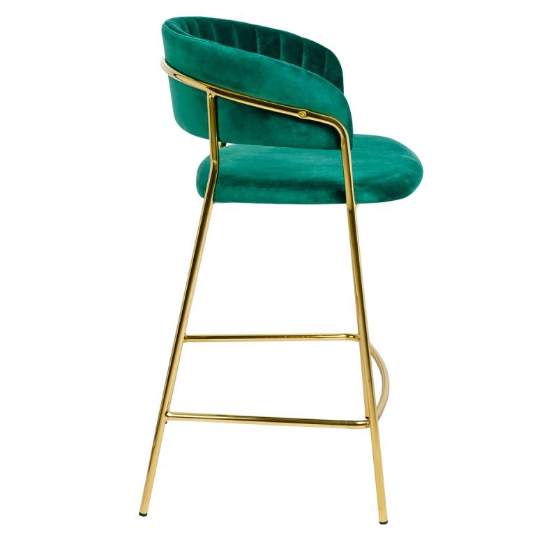 Krzesło barowe MARGO 65 ciemny zielony - welur, podstawa złota