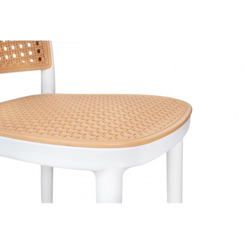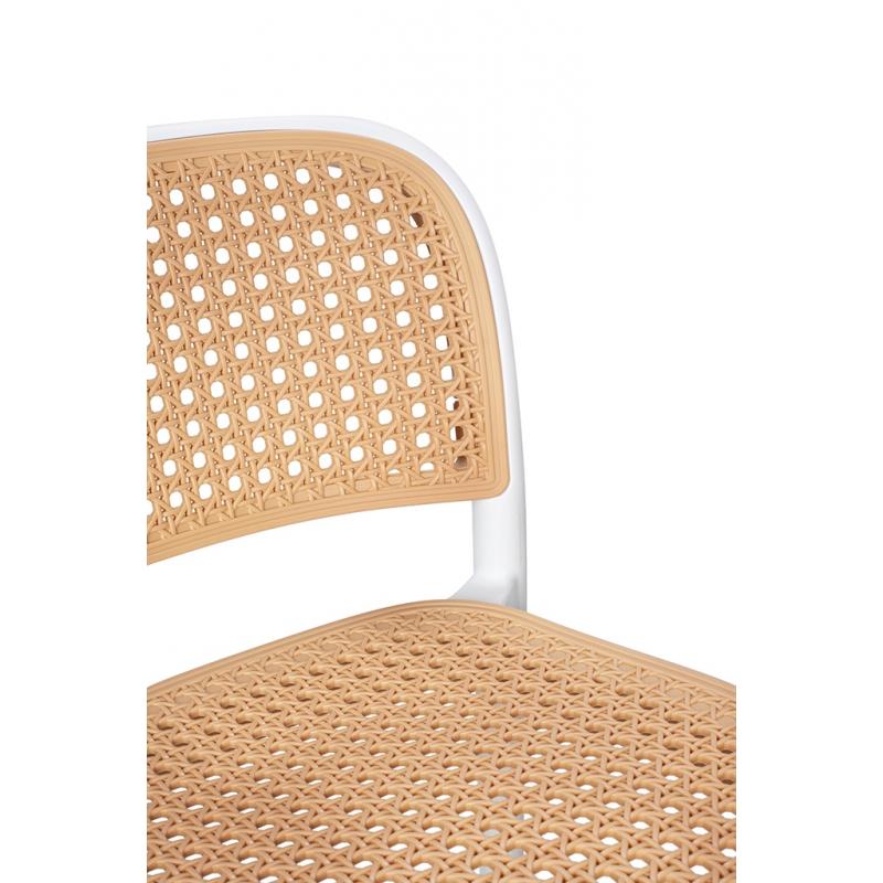 Krzesło barowe WICKY białe. Zaprojektowane na wzór mebla ogrodowego. Ażurowe siedzisko i oparcie przypominające rattan powodują, że hoker nabiera lekkości. Ponadczasowe połączenie prostoty i podmiejskiego stylu kojarzy się z latem i wolnym czasem. Możliwość sztaplowania jest świetnym rozwiązaniem, aby zaoszczędzić przestrzeń i pozwala na praktyczne przechowywanie produktu. Krzesło barowe w całości wykonane jest z polipropylenu.Szerokość siedziska: 36 cm Głębokość siedziska: 38,5 cm Wysokość oparcia: 30,5 cm Szerokość oparcia: 40,5 cm Wysokość do podnóżka: 34,5 cm Wysokość podnóżka: 3 cm Wysokość nóg: 73 cm Rozstaw nóg przód: 40 cm Rozstaw nóg tył: 50 cm Głębokość nóg: 45,5 cm Wymiary opakowania: 58 cm x 68 cm x 117 cm.