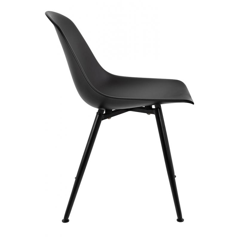 Krzesło RESOL czarne Siedzisko zostało wykonane z polipropylenu w kolorze czarnym, a podstawa z metalu lakierowanego na czarno. Prosta forma, uniwersalna kolorystyka i praktyczne połączenie materiałów sprawi, że krzesło sprawdzi się w niemal każdej aranżacji.Głębokość siedziska 42 cm Wysokość oparcia: 40 cm Rozstaw nóg (szerokość): 48 cm Rozstaw nóg (głębokość): 49 cm.