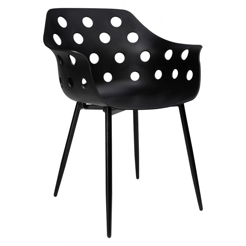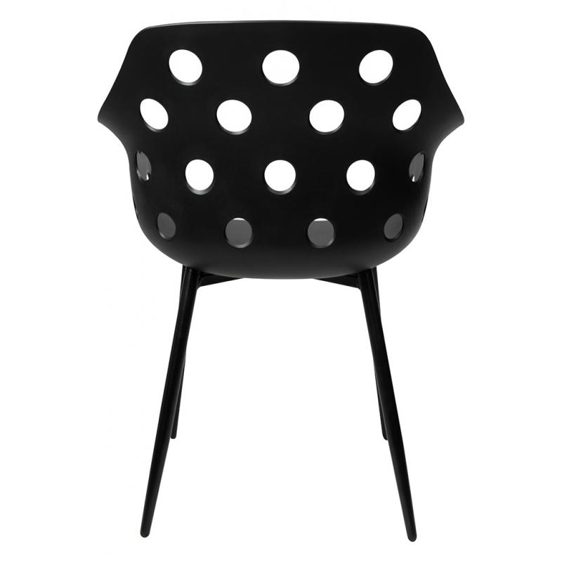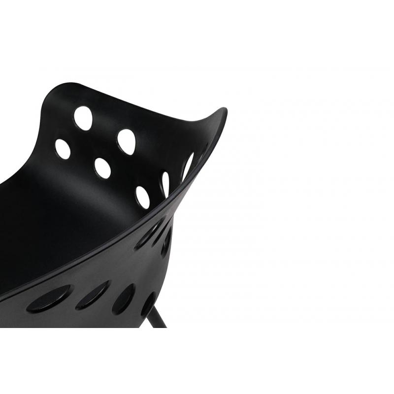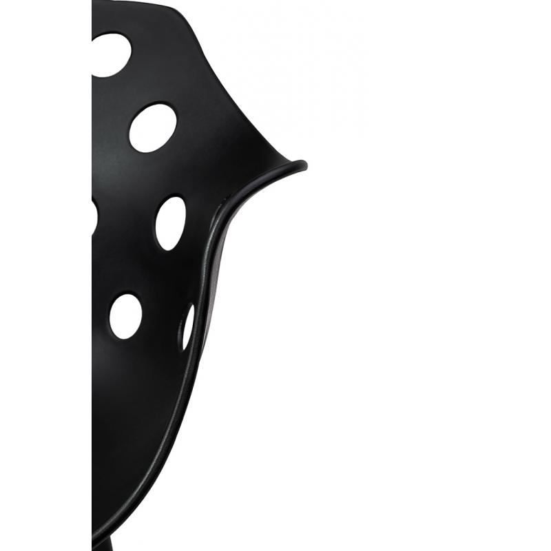 Krzesło JASON to przedstawiciel klasycznej formy w nieco ekstrawaganckim wydaniu. Siedzisko wykonano z wytrzymałego polipropylenu w kolorze czarnym. Zastosowanie geometrycznych okręgów w oparciu wyraźnie wpisuje się w nowoczesne przestrzenie. Całość dopełnia solidna, stalowa podstawa malowana proszkowo na czarno. Jason wspaniale nadaje się zarówno do wnętrz prywatnych jak też do użytku publicznego.Wymiary opakowania: 66 cm x 65 cm x 65 cm Wysokość oparcia: 38 cm Sposób wysyłki: Paczka Produkt do samodzielnego montażu: Tak