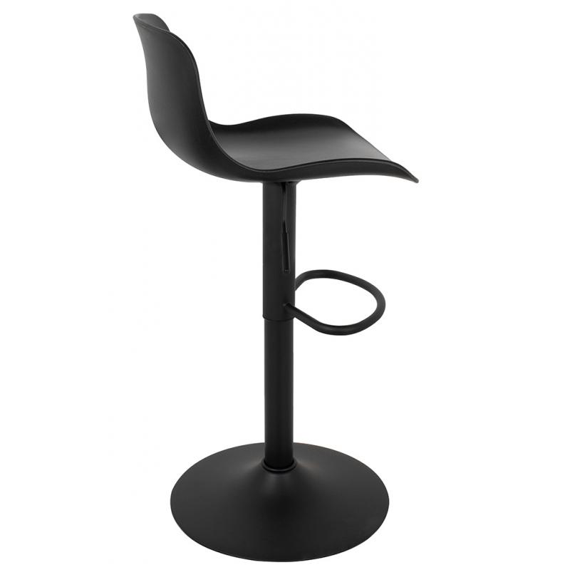Krzesło barowe STOR regulowane czarne. Hoker jest świetnym dodatkiem do kuchni, jeżeli chcemy sprawić, aby wyglądem i klimatem przypominała bar. Siedzisko zostało wykonane z tworzywa sztucznego, a postawa z metalu w kolorze czarnym. Stor ma regulowaną wysokość, podnóżek i obrotowe siedzisko, co zwiększa komfort użytkowania. Prosty i ponadczasowy design doskonale wkomponuje się w przestrzeń kuchenną, jak i część barową restauracji.Szerokość siedziska: 43 cm Głębokość siedziska: 36 cm Wysokość oparcia: 21 cm Szerokość oparcia: 40 cm Średnica podstawy: 43 cm Wysokość do podnóżka: 22-42 cm Szerokość podnóżka: 29 cm Głębokość podnóżka: 18 cm Średnica podnóżka: 2 cm Długość rączki od regulacji: 15 cm Możliwość sztaplowania: Nie Wymiary opakowania: 46 x 46 x 37 cm.