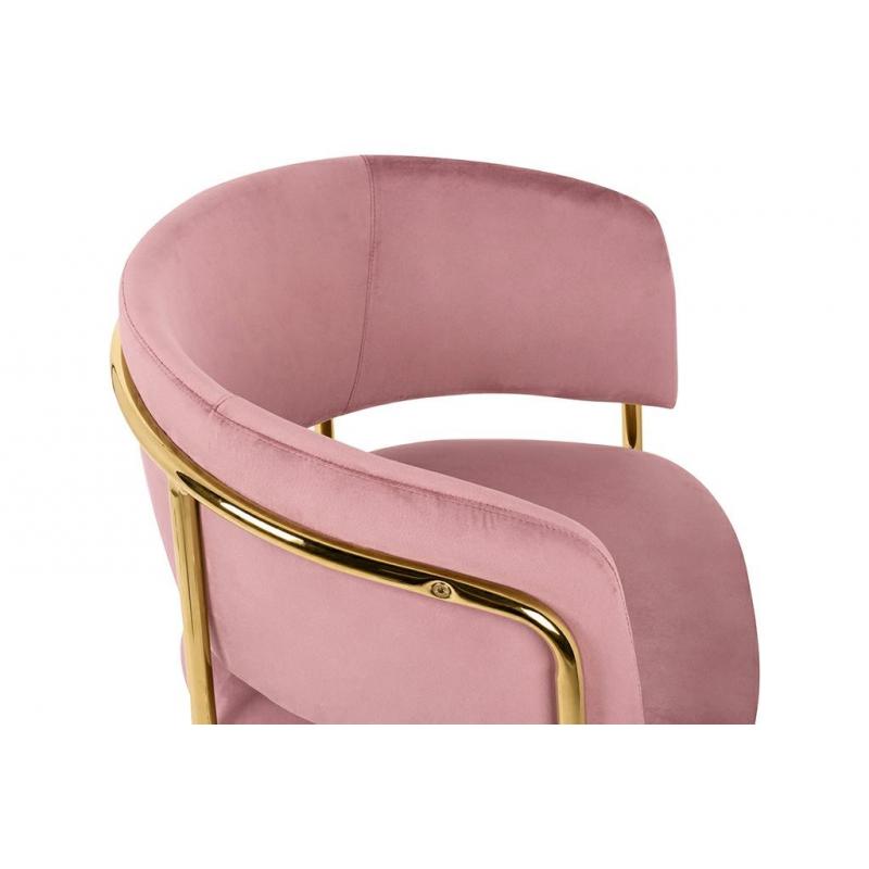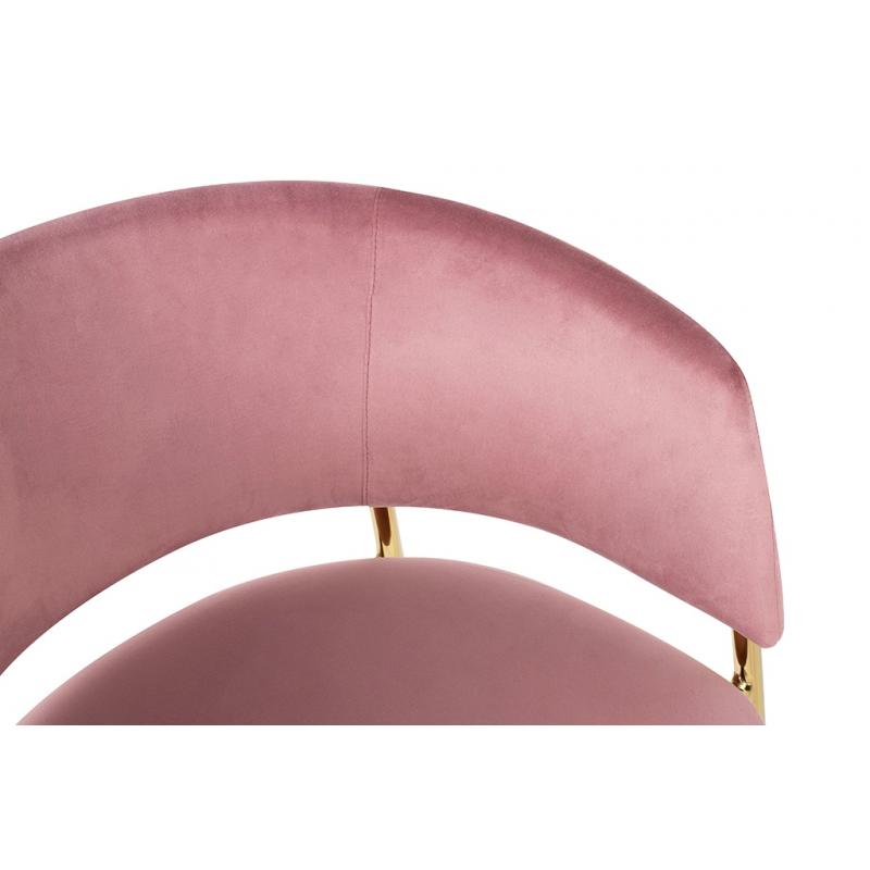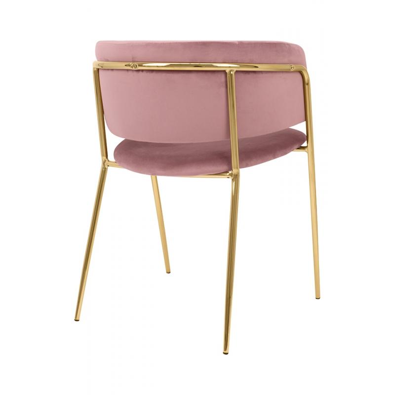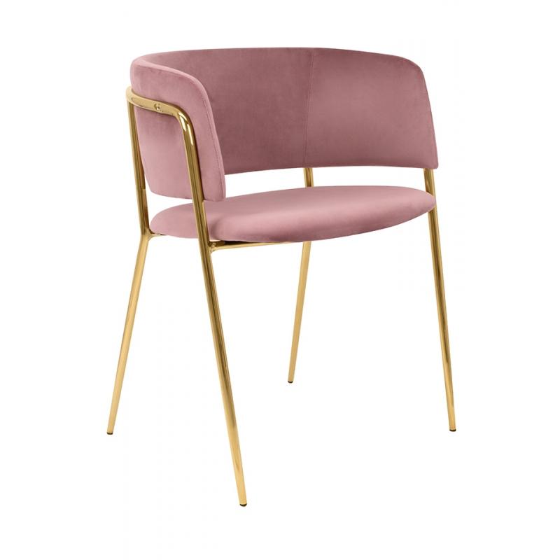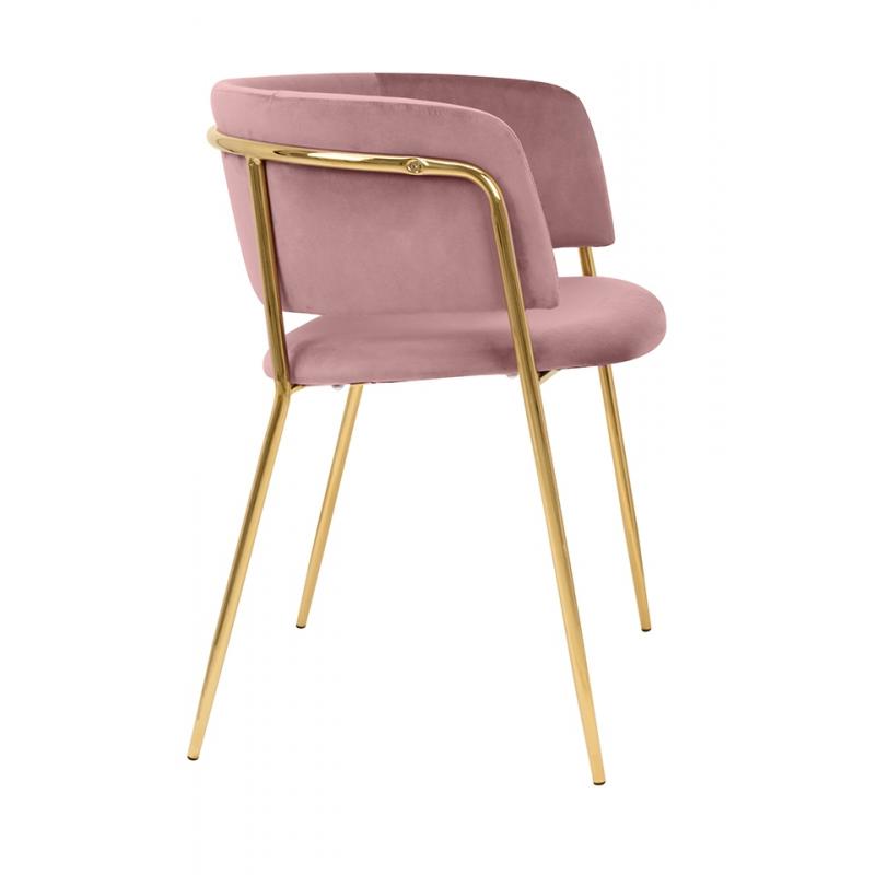 Krzesło DELTA różowe. Siedzisko i oparcie tapicerowane są miękkim i przyjemnym w dotyku welurem. Mocna, stabilna konstrukcja została wykonana z metalu w złotym, błyszczącym kolorze. Gładkie oparcie w połączeniu z nowoczesną kolorystyką sprawiają, że Delta świetnie odnajdzie się we wnętrzach klasycznych, jak również w stylu glamour.Siedzisko: szer. 46 cm / gł. 48 cm Oparcie: wys. 30 cm / szer. 42 cm Rozstaw nóg: szer. 54 cm / gł. 47 cm Waga netto: 6,5 kg Wymiar opakowania: 61 cm / 77 cm / 60 cm.