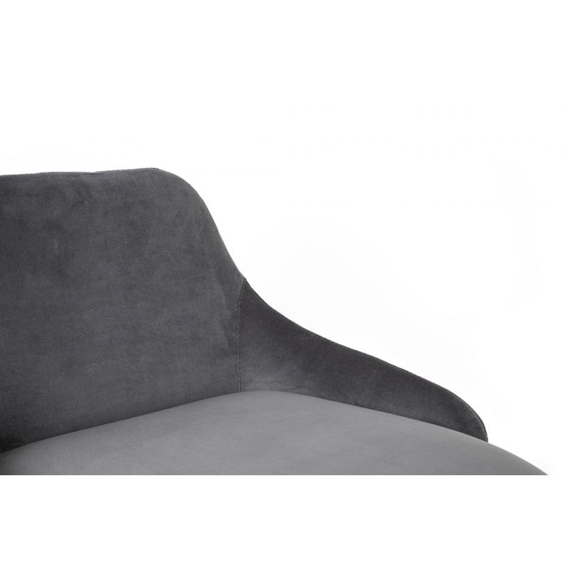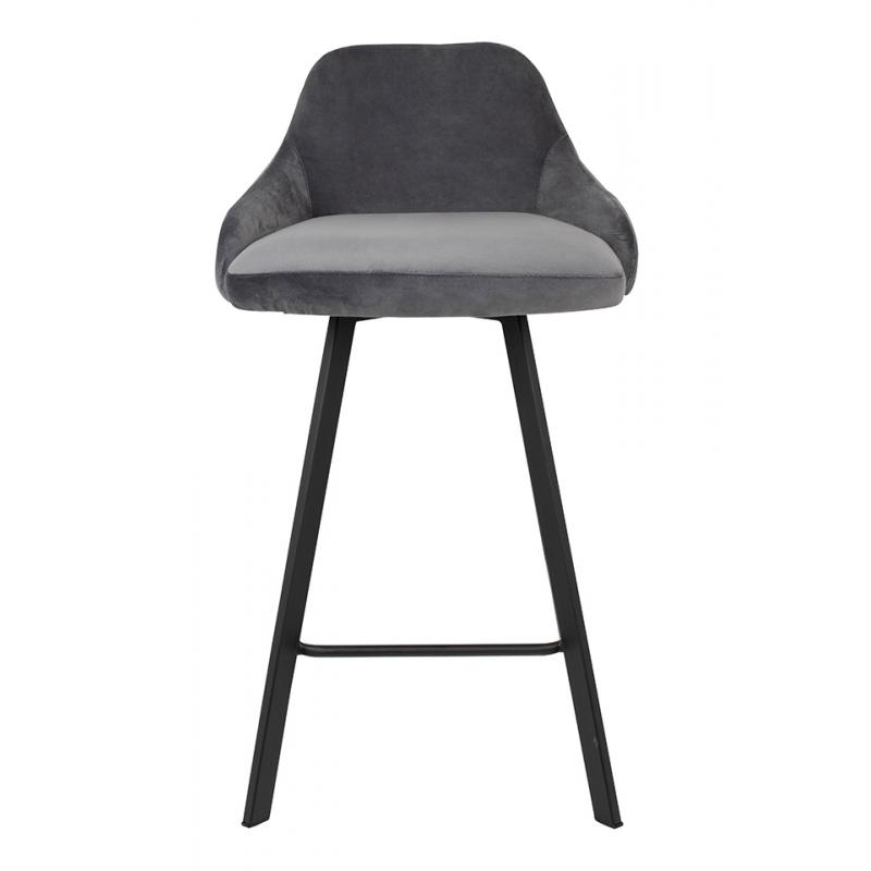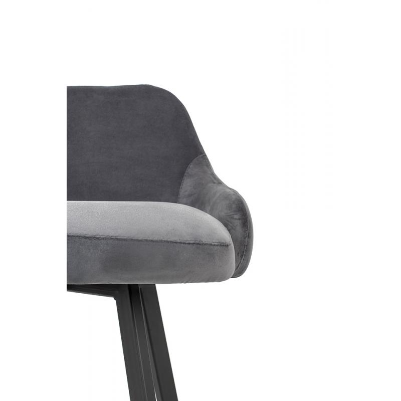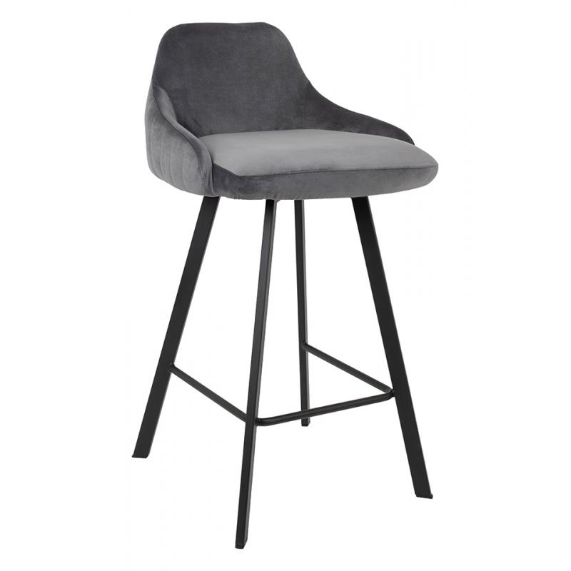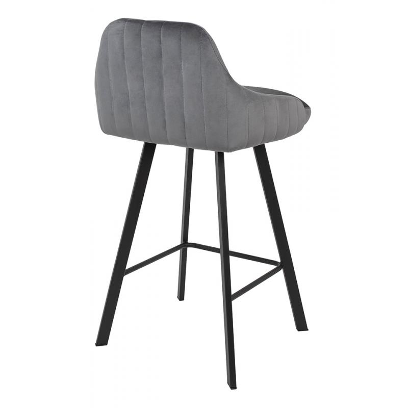 Krzesło barowe CANVA szare. Siedzisko i oparcie o profilowanym kształcie tapicerowane są szarą tkaniną welurową. Podstawa została wykonana z metalu w czarnym, matowym kolorze. Canva oprócz nowoczesnej formy posiada dekoracyjne przeszycia na tyle oparcia.Siedzisko: szer. 47 cm / gł. 40 cm Oparcie: wys. 25 cm / szer. 36 cm Rozstaw nóg: szer. 44 cm / gł. 42 cm Wysokość do podnóżka: 20 cm Waga netto: 6,1 kg Wymiar opakowania: 65 cm / 61 cm / 65 cm.
